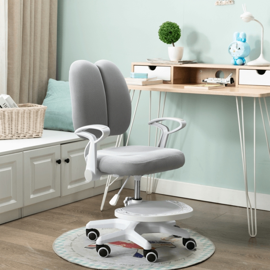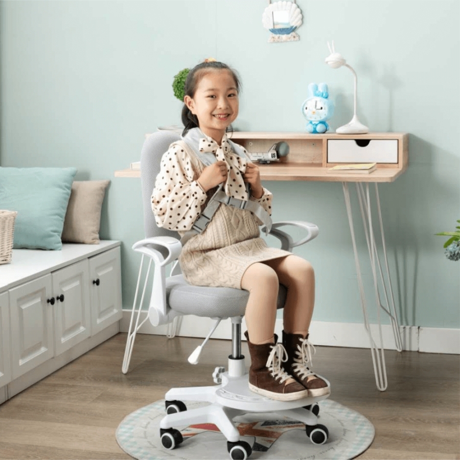 Kárpit anyaga: háló A szövet kopásállósága: 90 000 Martindale Szín: szürke Váz anyaga: műanyag Szín: fehér Méretei (SzéxMéxMa): 53x51x90-102-112 cm Állítható ülésmagasság : 37-50 cm Ülésmélység: 27-42 cm Ülésszélesség: 45 cm Háttámla (SzéxMa): 42x45 cm Teherbírás: 90 kg Forgó növekvő szék Állítható ülésmagasság Állítható ülésmélység Hátrahajtható kéztámaszok Lehajtott kartámaszokkal befér az asztal alá Állítható magasságú lábtartó Levehető alap A háttámla pántokat tartalmaz A pántok növelik a biztonságot ülés közben Pántok segítenek a test megfelelő tartásában Pántok levehetőek Gumi kerekekkel Laminát és fa padlóhoz alkalmas A görgők biztonsági zárral rendelkeznek (fék) Amikor a gyermek a székben ül, a kerekek reteszelődnek, így a széket nem lehet mozgatni. Bontásban szállítva.
