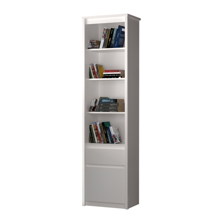 Anyag: laminált DTD/ABS élek Szín: fehér Méretek (SzxMéxMa): 55,6x36,2x210,6 cm Anyag vastagsága: 1,6-3,2 cm Nyitott és zárt tárhely Szekrény ajtókkal Fiókkal Fiók magassága: 17 cm Polcokkal Polcok teherbírása: 5 kg Műanyag lábak Modern dizájn Ajánljuk a falhoz rögzíteni Szétszerelve szállítva