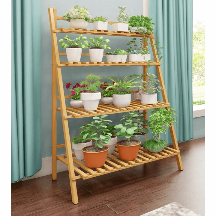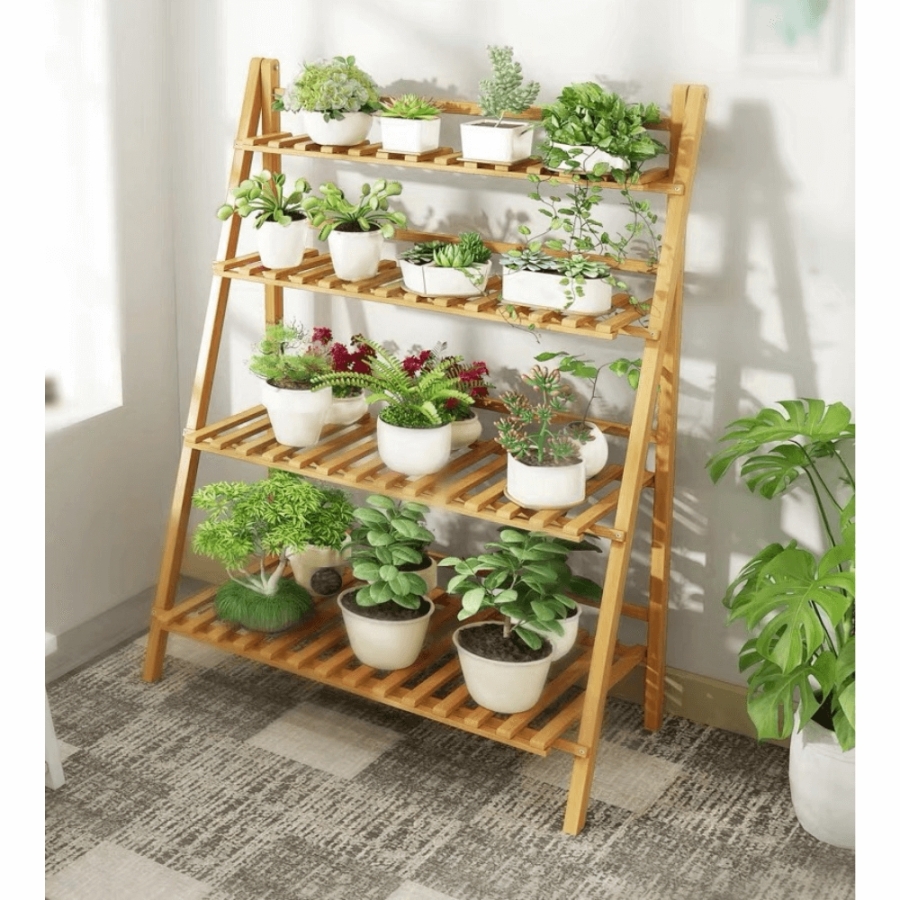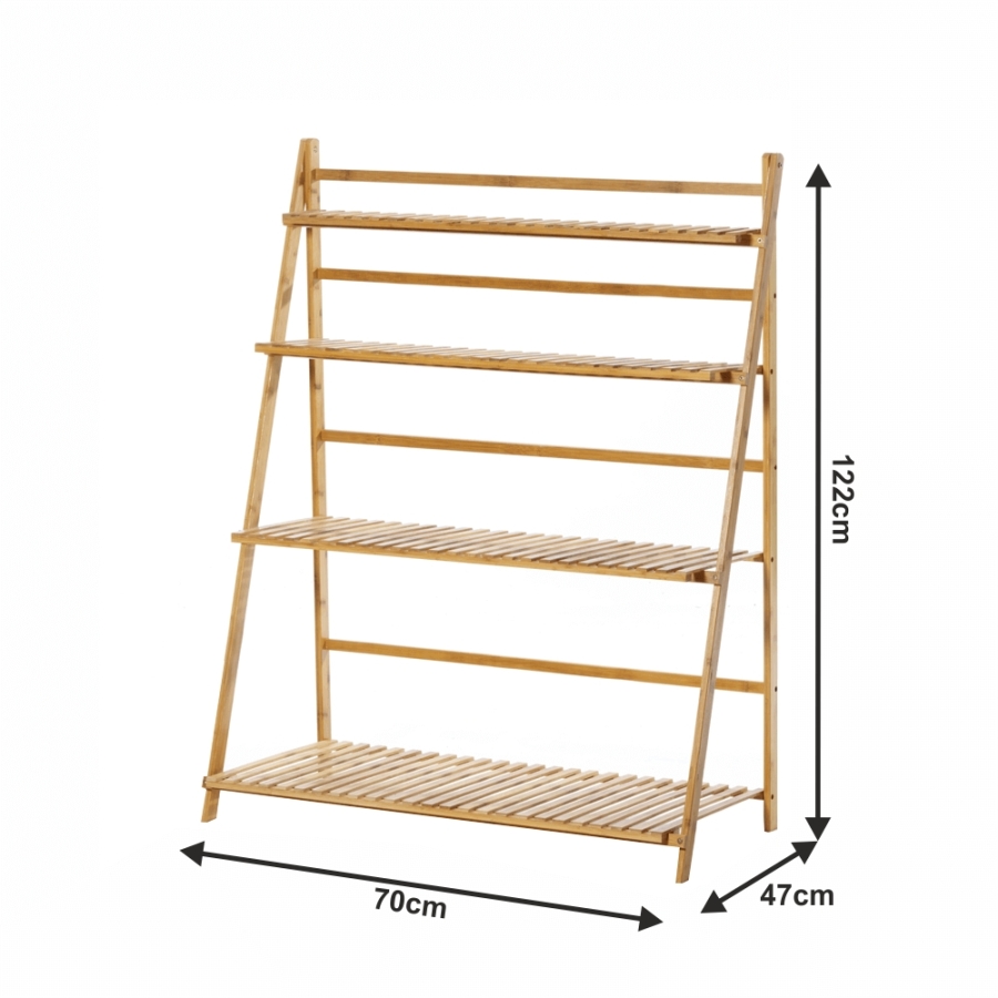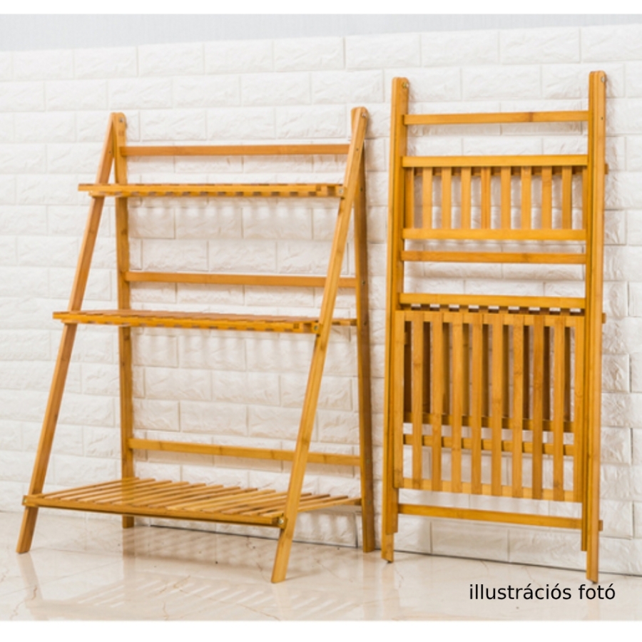Összecsukható állvány NEPEL 2 + ajándék Anyag: bambusz Szín: bambusz Méretek (SzéxMéxMa): 70x47x122 cm Négy polc Egy pár kesztyű ajándékba Kerti szerszámkészlet ajándékba Szállítás szétszerelve