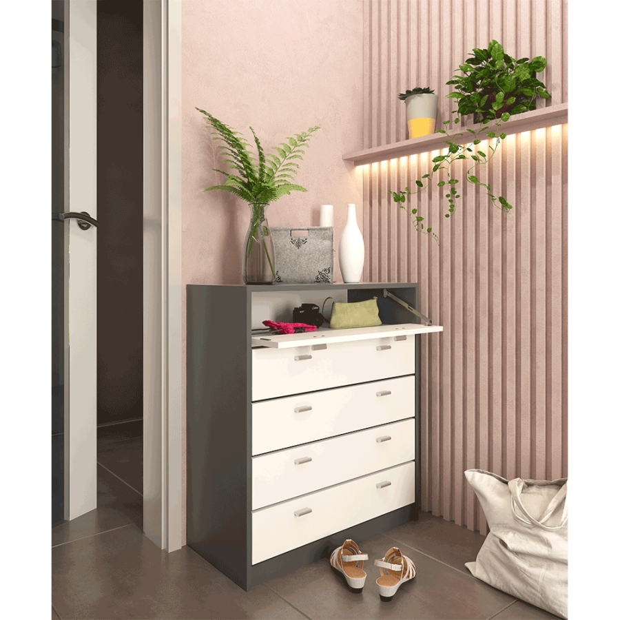 Ötrészes cipősszekrény, grafit/fehér, VIVAT NEW TYP 4