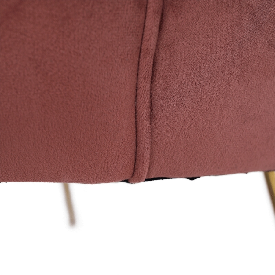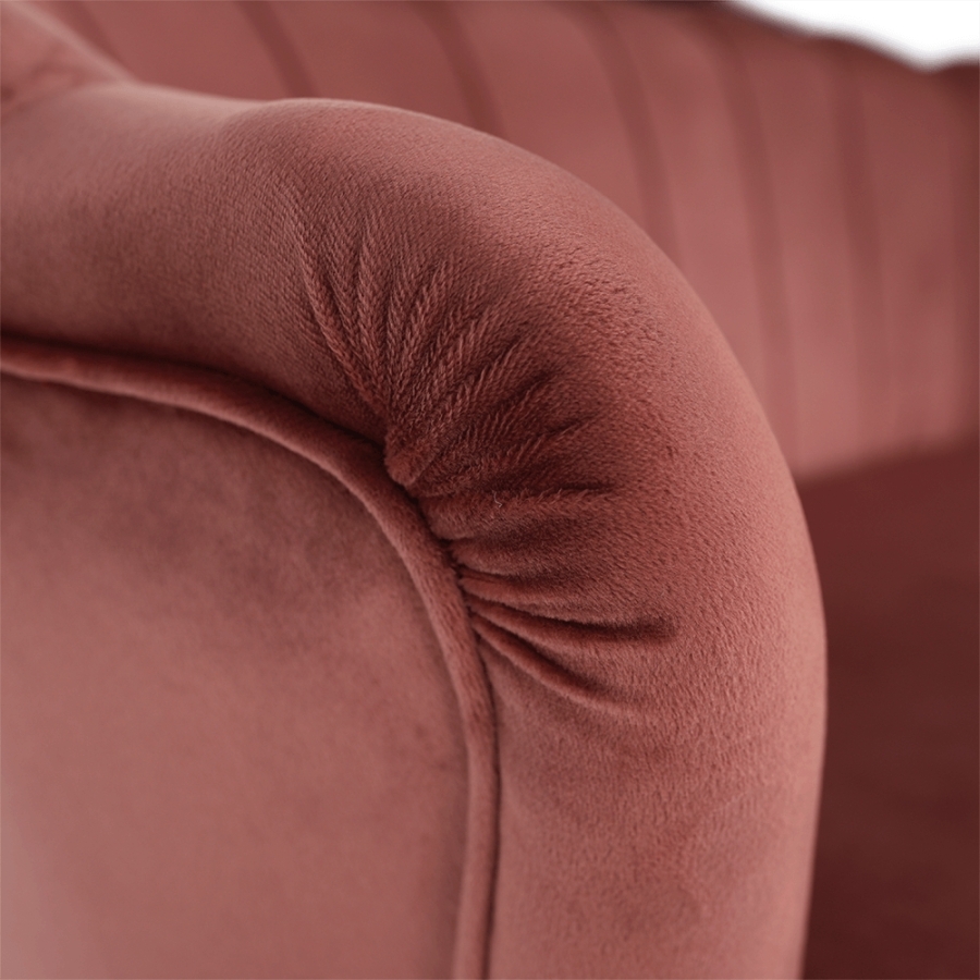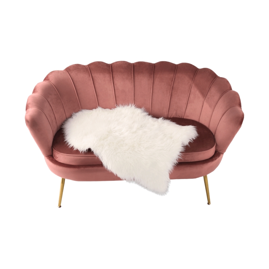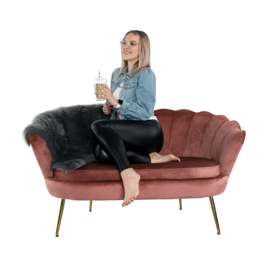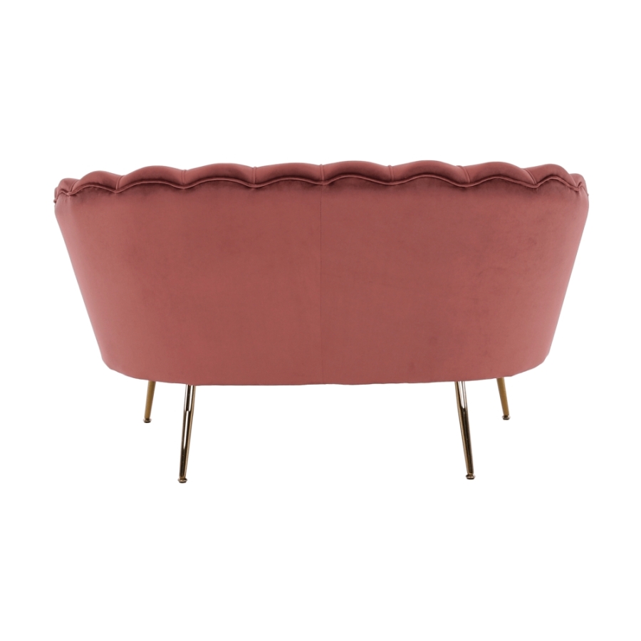 Ülőlap anyaga: Velvet szövet A szövet kopásállósága: 80 000 Martindale Szín: rózsaszín 23 Lábak anyaga: fém Szín: gold króm-arany Méretei (SzéxMéxMa): 132x76x77 cm Ülés mélysége: 56 cm Ülés magassága: 44 cm Terhelhetőség: 180 kg Dizájnos Art-deco stílus Kagyló alak Modern kidolgozás Bontásban szállítva.