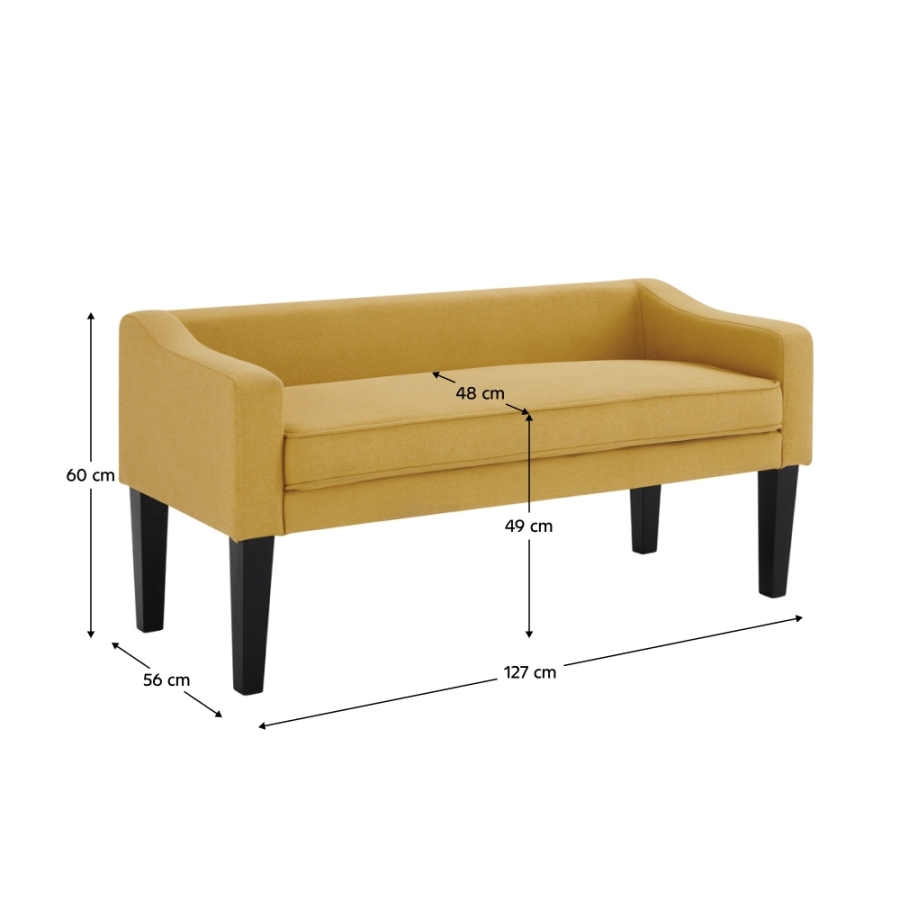 Anyag: anyag/fa A szövet kopásállósága: 90 000 Martindale Szín: sárga/fekete Méretek (SzéxMéxMa): 127x56x60 cm Ülés magasság: 49 cm Ülés mélység: 48 cm Terhelhetőség ágyanként: 90 kg Modern Minőséges hab Bontásban szállítva