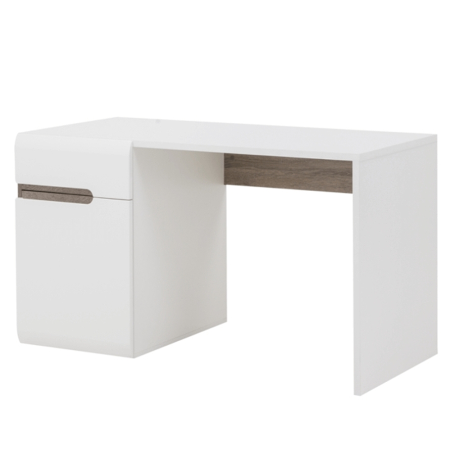 PC asztal, fehér extra magasfényű HG/tölgy sonoma sötét trufla, LYNATET TYP 80