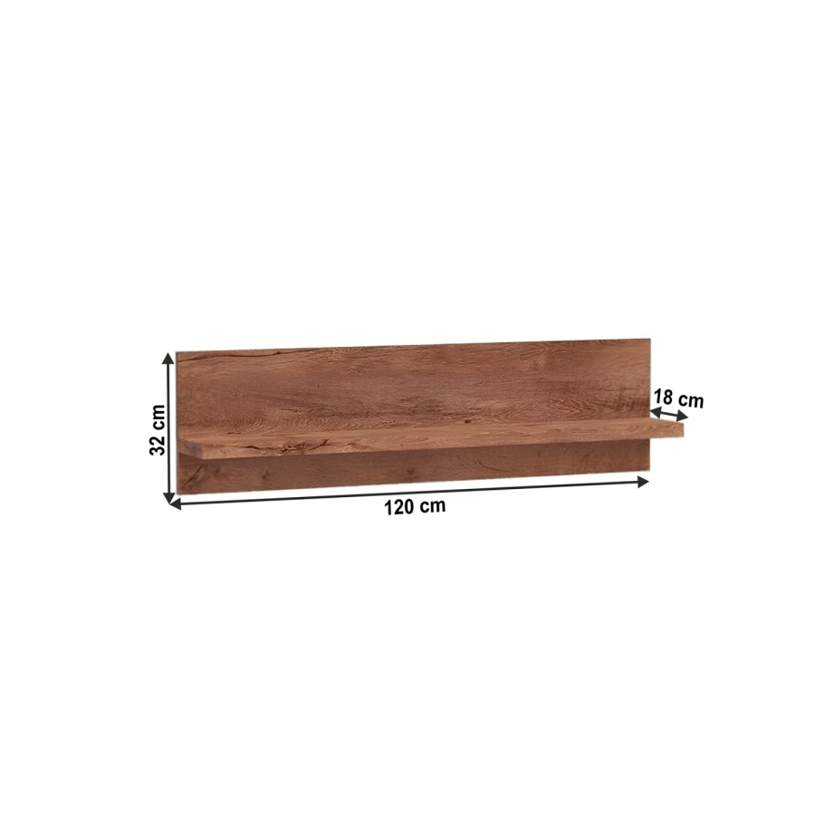 Polc 11 luxus magas minőségű elemes bútor kínálatunkból masszív dizájnnal Váz vastagsága: 48 mm, fém fogantyúk Anyag: laminált DTD, ABS élek Színváltozat: világos kőris Méretek (SzéxMéxMa): 120x18x32 cm Szétszerelt állapotban szállítjuk