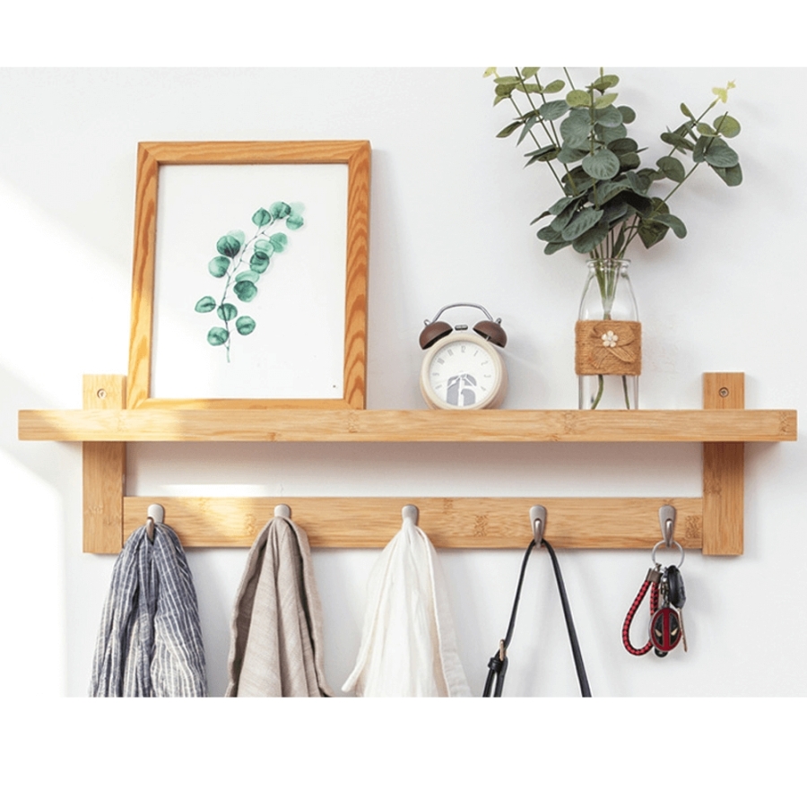 Anyag: lakkozott bambusz/acél Szín: bambusz Méretek (SzxMxMa): 78,5x8x12 cm Négy kampó Polc Teherbírás:Anyag: lakkozott bambusz/acél