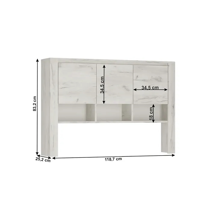 Polc ANGEL 60 íróasztalhoz vagy komódhoz Anyag: laminált DTD Színe: fehér craft Méretek (SzéxMéxMa): 118,7x25,2x83,2 cm Szállítás szétszerelve