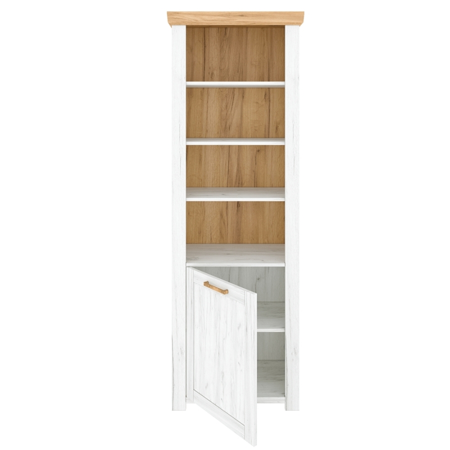 Anyag: DTD laminált/MDF Szín: tölgy craft arany/tölgy craft fehér Méretei (SzéxMéxMa): 68,3x41,8x199,7 cm Korpusz anyag vastagsága: 16 mm Felső lap anyag vastagsága: 22 mm Ajtók anyag vastagsága: 19 mm Alsó terület magassága a padlótól 4,2 cm Szekrény Polcok Bontásban szállítva.