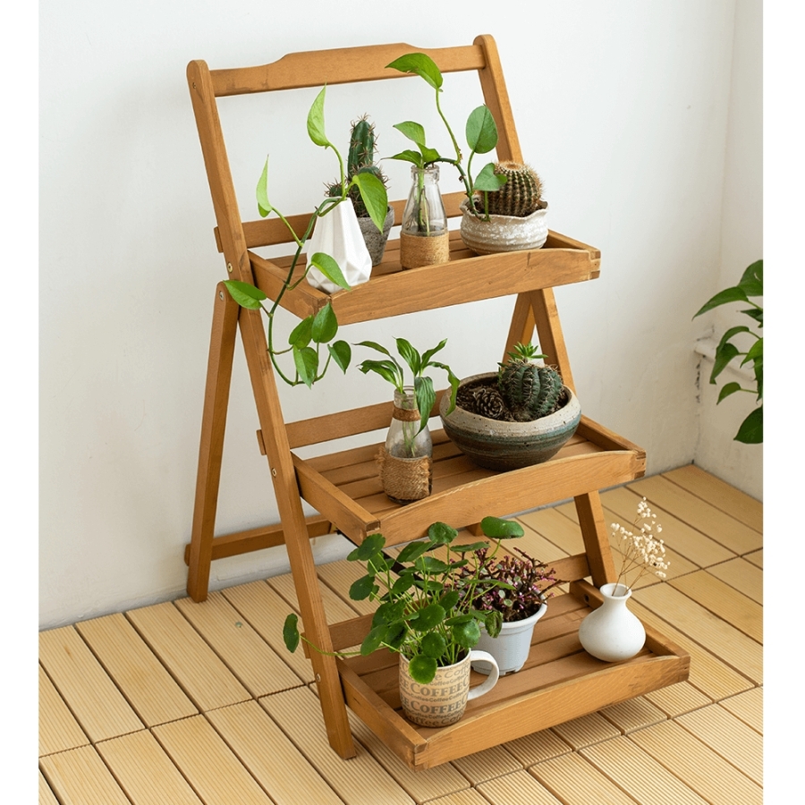 Anyag: tömör fa Szín: égerfa Méretek (SzxMéxMa): 50x64x80,5 cm 3 polcok Polcok emelt előlapokkal Bel- és kültérre alkalmas Állvány a cserepes növények számára Fotókhoz, dekorációkhoz, ajándéktárgyakhoz Dekoratív állvány a kertbe vagy a teraszra Praktikus polcállvány grillezéshez Sokoldalú, különféle felhasználási módok Teherbírás: 25 kg Összeszerelve szállítva