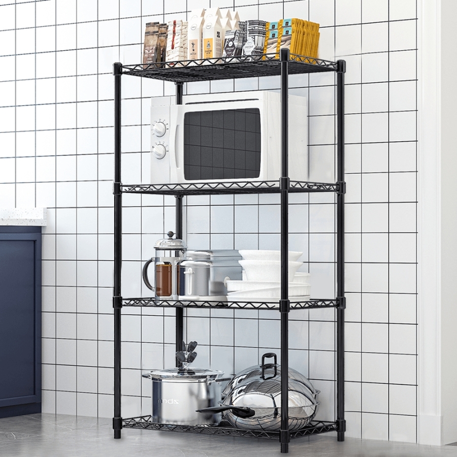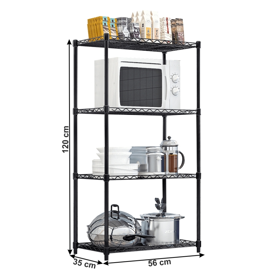 Anyag: fém Szín: fekete Méretek (SzxMéxMa): 56x35x120 cm 4 polcok Teherbírás: 40 kg Teherbírás/polc: 10 kg Szétszerelve szállítjuk