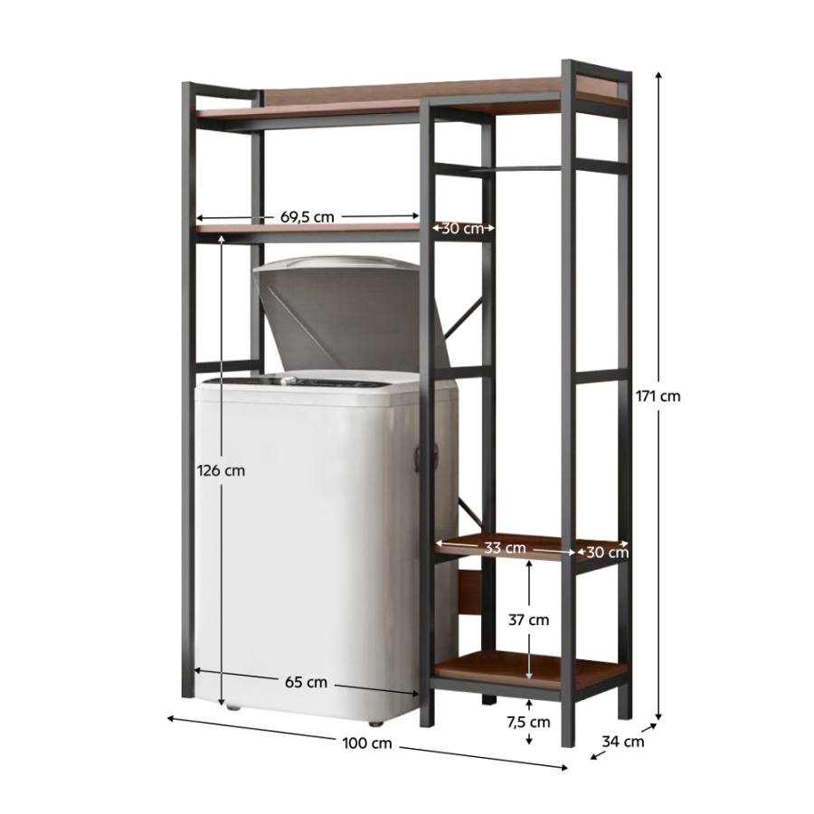 Polcállvány mosógép fölé, sötét tölgy/fekete, DELSIN