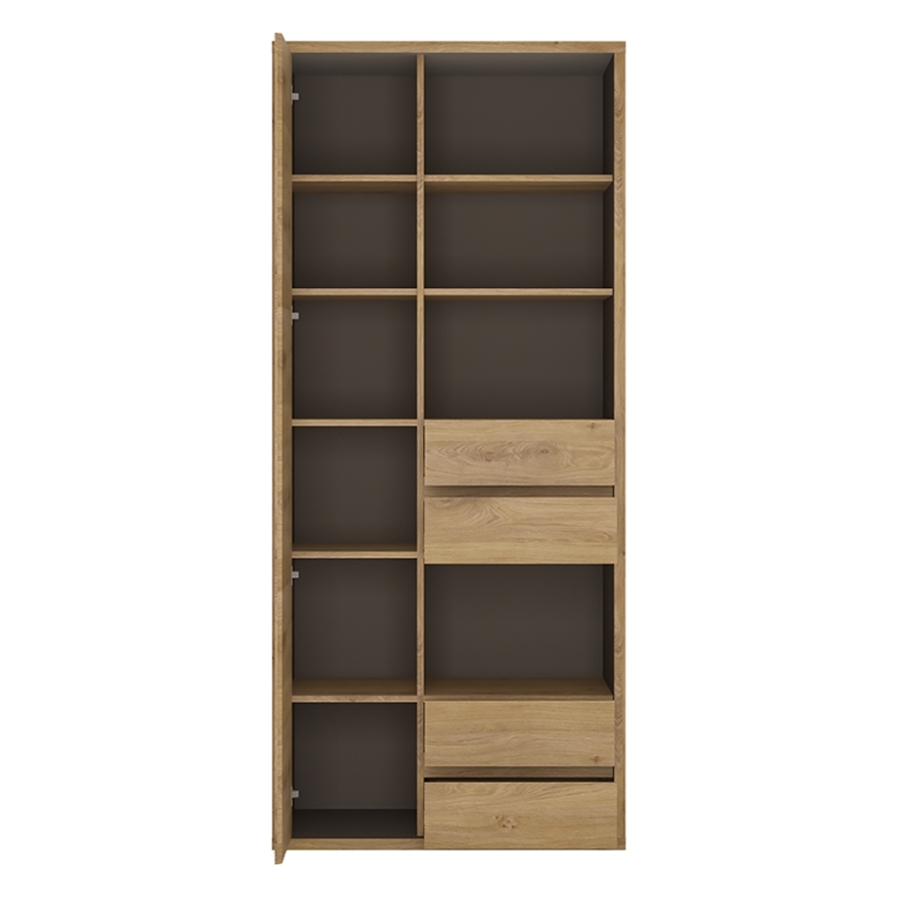 Anyag: laminált DTD Színkivitel: shetland tölgy/szürke Méretek (SzxMéxMa): 86x40x197 cm Korpusz vastagsága: 2,8 cm Fogantyúk nélkül Egyszerű és elegáns Vastag korpusz 4 fiók 7 polc 4 nyitott rész modern stílus Kiváló minőség Precíz kidolgozás Ellenáll a karcolásoknak, az UV sugárzásnak, a magas hőmérsékletnek Polc teherbírása: 5 kg Fiók teherbírása: 5 kg Bontásban szállítva