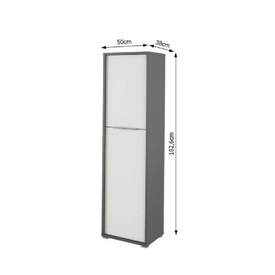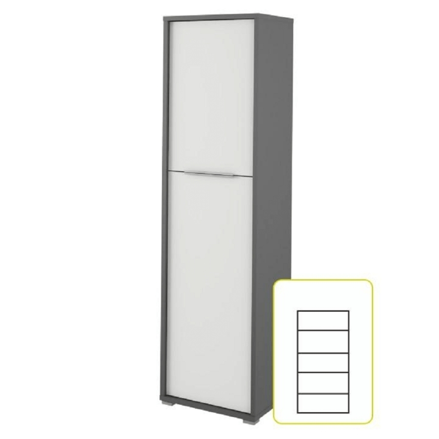 Polcos szekrény RIOMA NEW TYP 08 Színváltozat: grafit/fehér Anyag: laminált DTD Méretek (SzéxMéxMa): 50x38x182,6 cm Szállítás szétszerelve