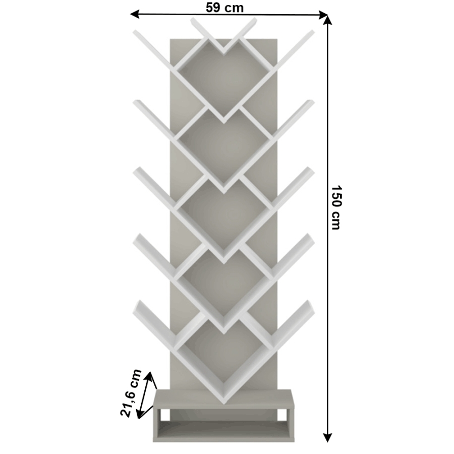 Anyag: DTD Szín: szürke/fehér Méretek (SzéxMéxMa): 59x21,6x150 cm Anyag vastagsága: 15 mm Vonzó dizájn Szokatlan módon elrendezett polcok Többfunkciós Bontásban szállítva