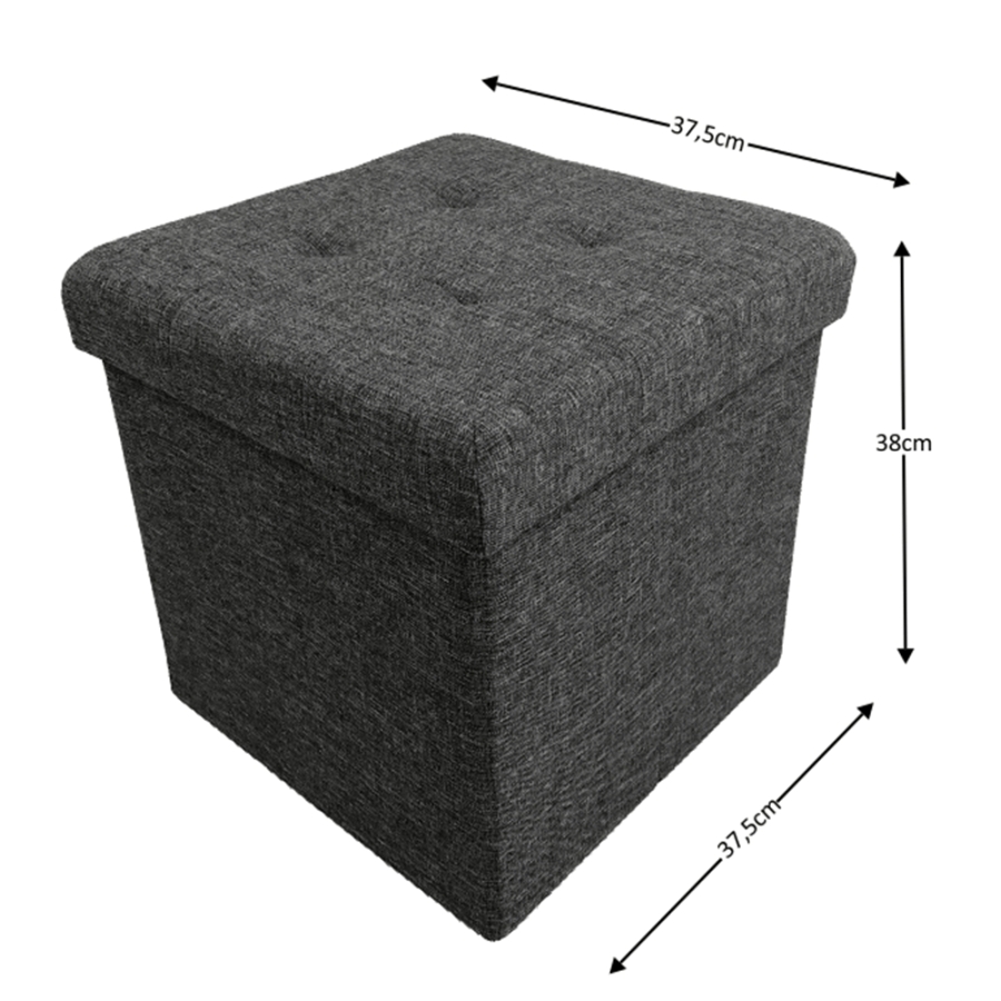 Puff steppelt rakodótérrel FALON Anyag: anyag A szövet kopásállósága: 90 000 Martindale Szín: sötétszürke Méretek (SzéxMéxMa): 37,5x37,5x38 cm Ülésmagasság: 38 cm Ülésmélység : 37,5 cm Bontásban szállítva.