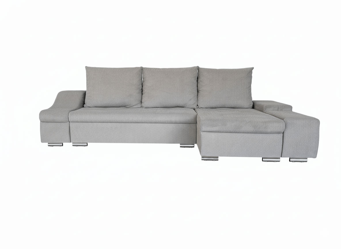 A termék alapvetően műanyag lábbal kerül szállításra, vagy modern, fekvő, króm lábakkal is kérhető felárért. Ez még elegánsabb megjelenést biztosít a sarokkanapénak.