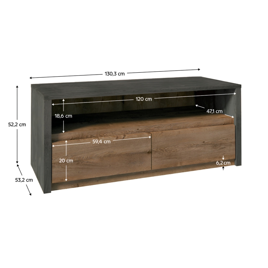 RTV asztal 130, tölgy lefkas/smooth szürke, MONTANA