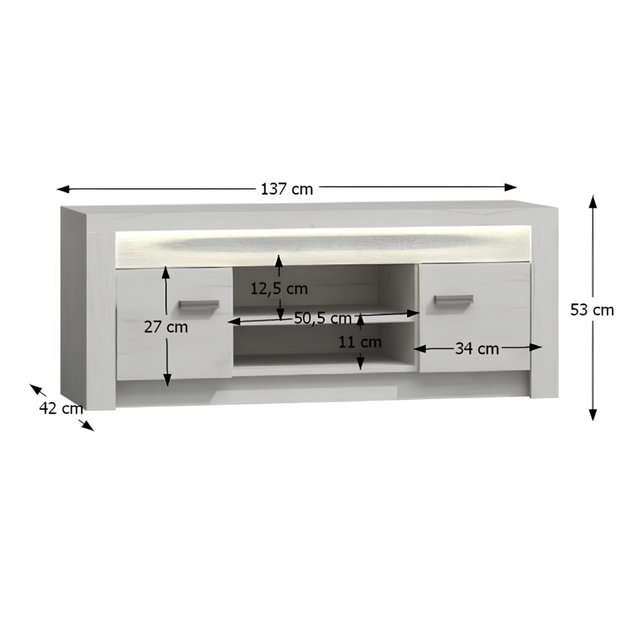 RTV asztal 09 luxus elemes bútor kínálatunkból Váz vastagsága: 48 mm, fém fogantyúk Anyag: laminált DTD, ABS élek Színváltozat: fehér kőris Méretek (SzéxMéxMa): 137x42x53 cm LED világítás hozzárendelhető Szétszerelt állapotban szállítjuk