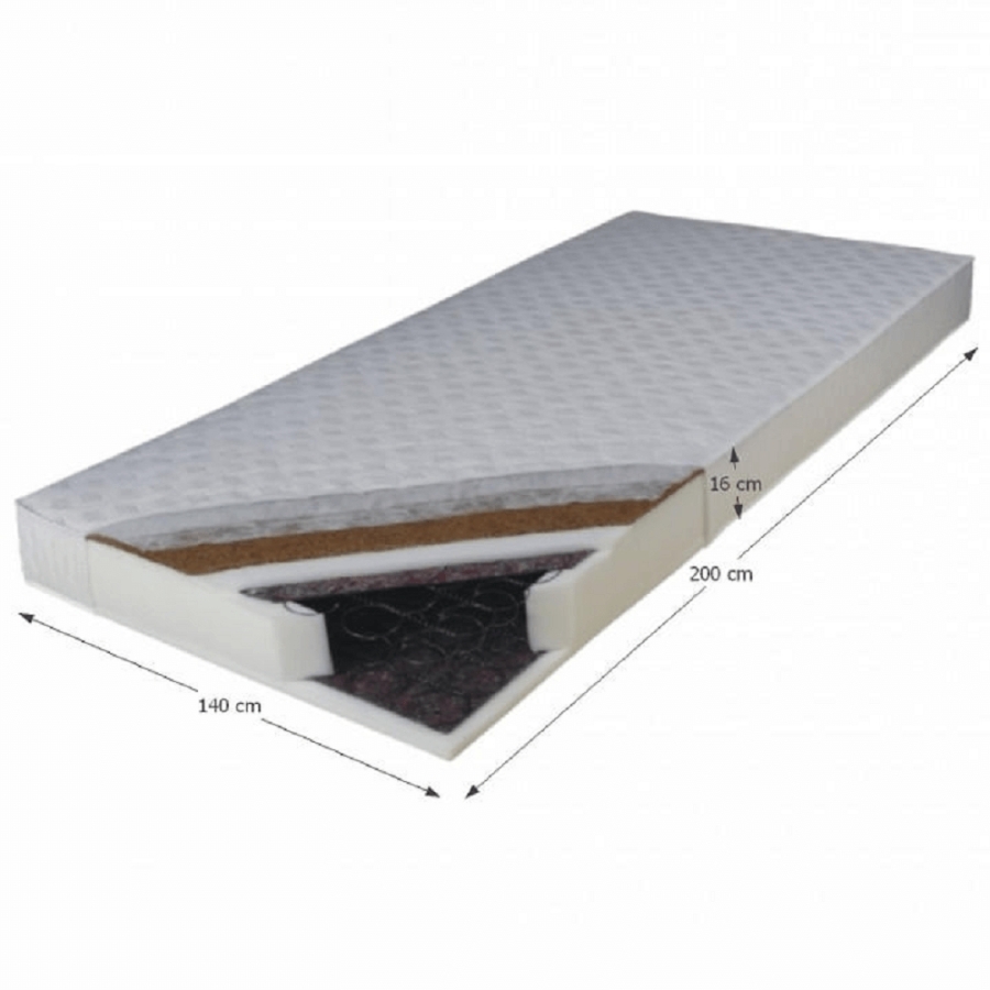 Anyag: Bonell rugók / poliuretán hab / latex kókuszdió lemez / pamut huzat