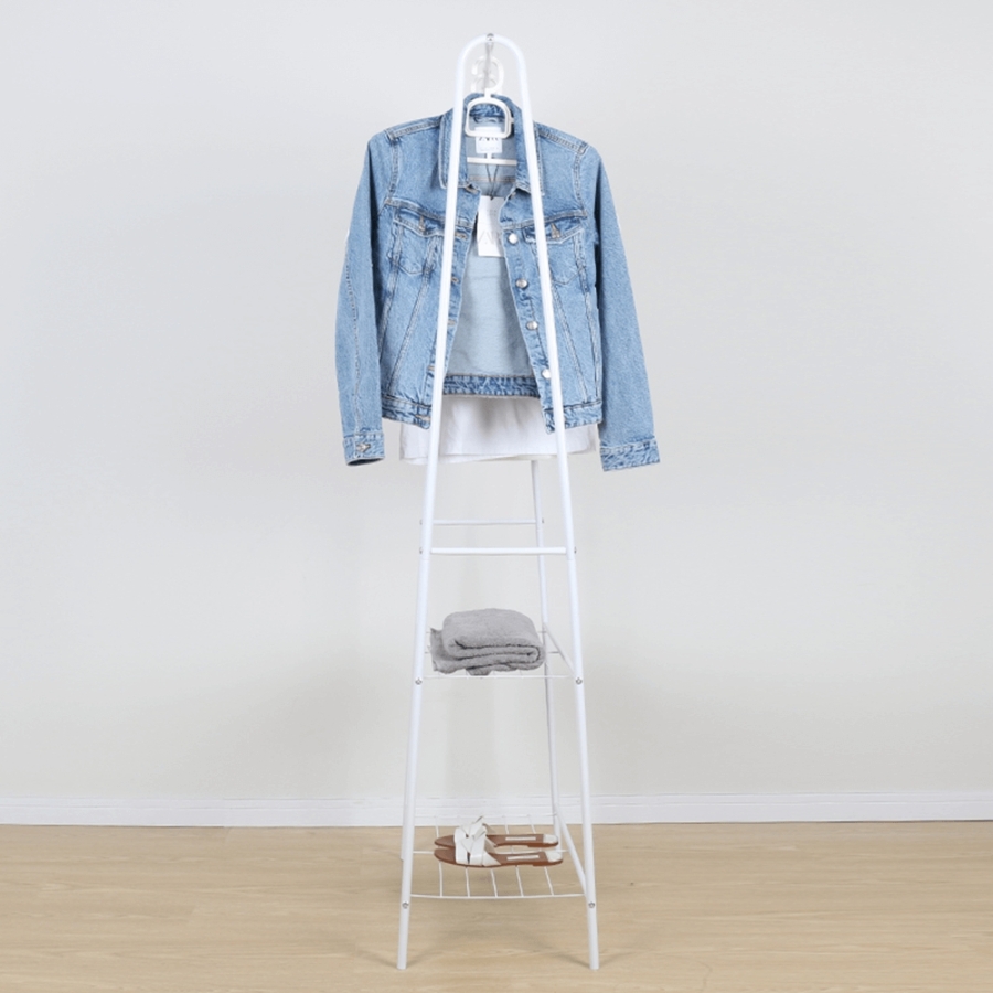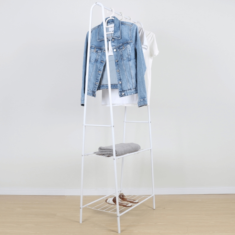 Anyag: fém Kivitelezés: fehér Méretek (SzxMéxMa): 60x35x160 cm Szilárd szerkezet Két polc Akasztórúd Szétszerelve szállítjuk