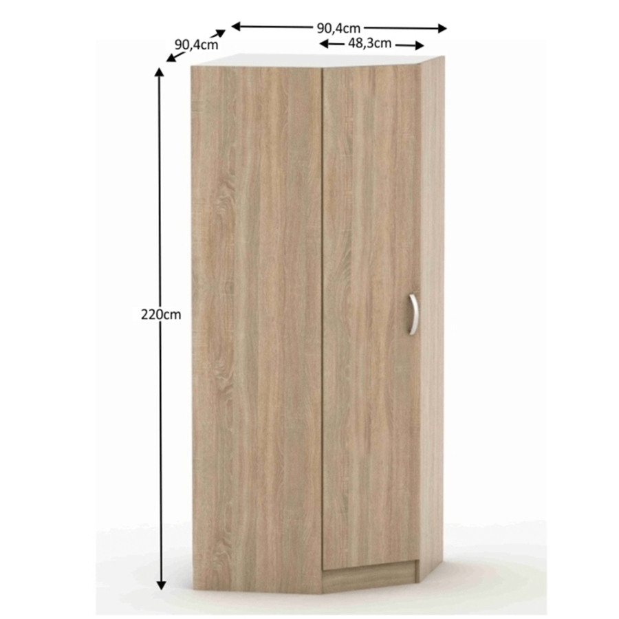 Sarok szekrény BETTY 2 Anyag: laminált DTD Szín: sonoma tölgy Méretek (SzéxMéxMa): 90,4x90,4x220 cm Szétszerelve szállítjuk.