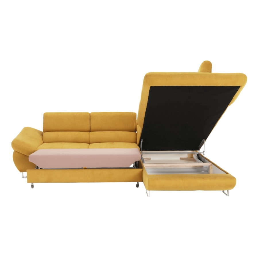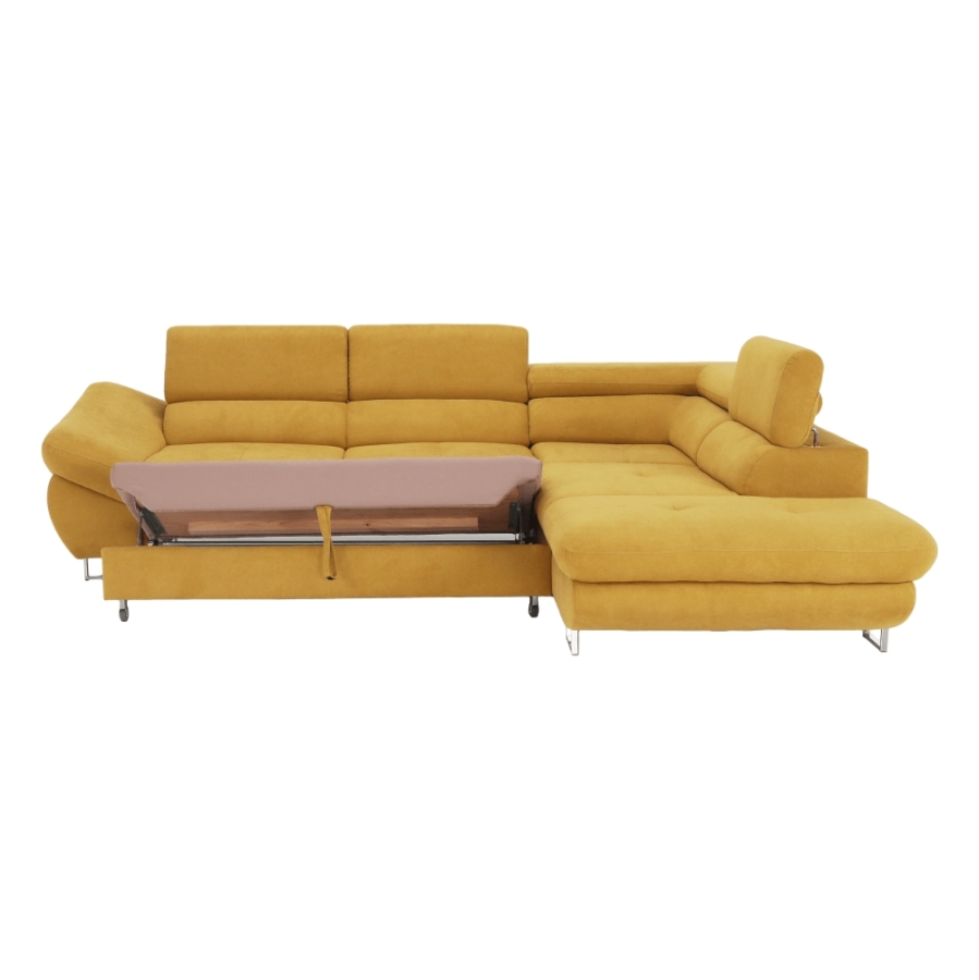 Kinyitható ülőgarnitúra FABIA (jobb sarok) rakodótérrel mustár színű szövetben. A szövet kopásállósága: 90 000 - 100 000 Martindale Méretek (SzéxMéxMa): 280x235x69/88 cm Ottomán szélessége: 100 cm Kartámla mélysége: 97 cm Terhelhetőség: 90 kg Fekvőterület mérete (SzéxH): 130x197 cm Az alsó tér magassága a padlótól: 8,7 cm Lehetséges megrendelni a Soro szövet 4 színváltozatában, ár: 668 500 Ft. Egyedi megrendelés esetén szükség van az adott összegnek a 10%-át befizetni,mint előleg. Az előleg befizetése után az Ön követelményét benyújtjuk a gyártónak. Szállítási idő: 6-8 hét. Szállítás szétszerelve.