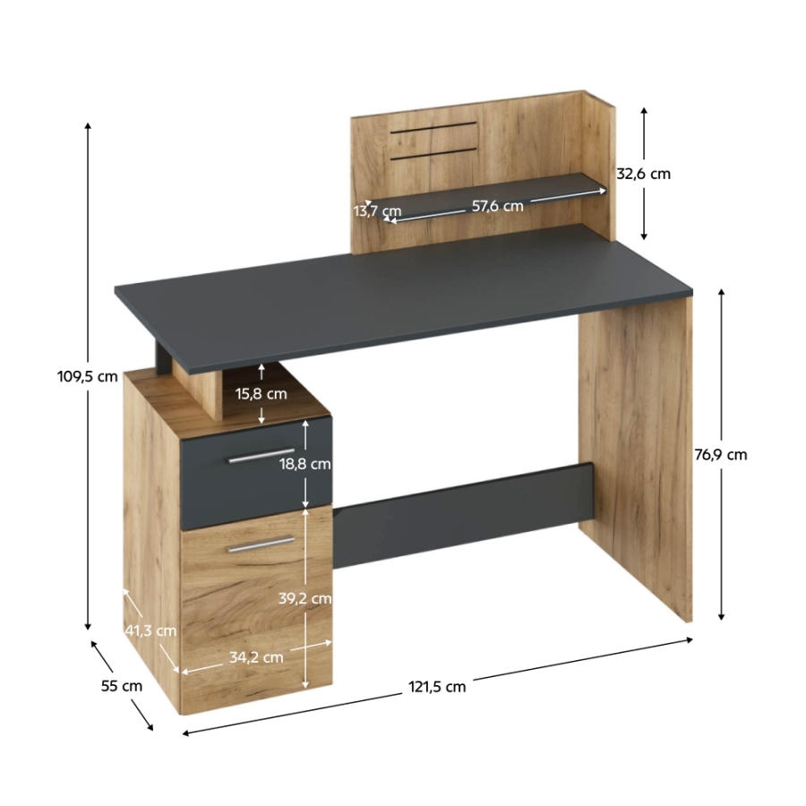 Számítógépasztal, artisan tölgy/grafit, PLATON NEW