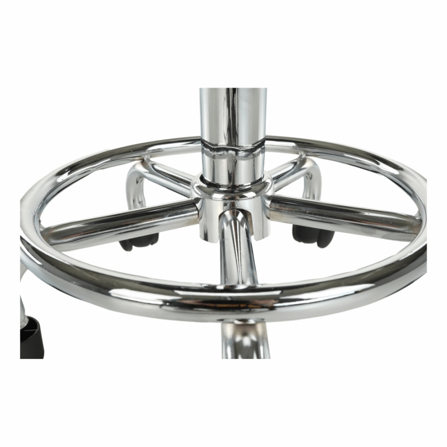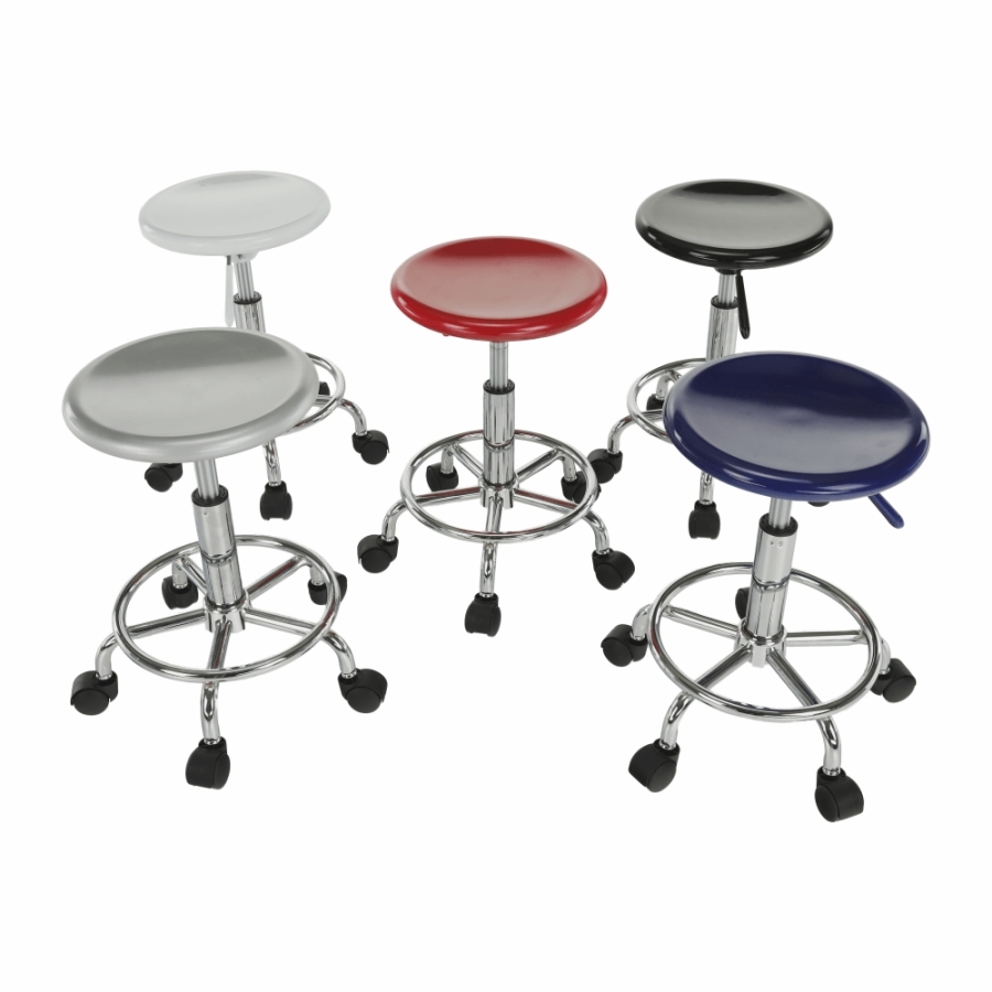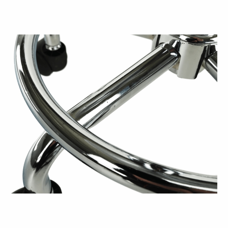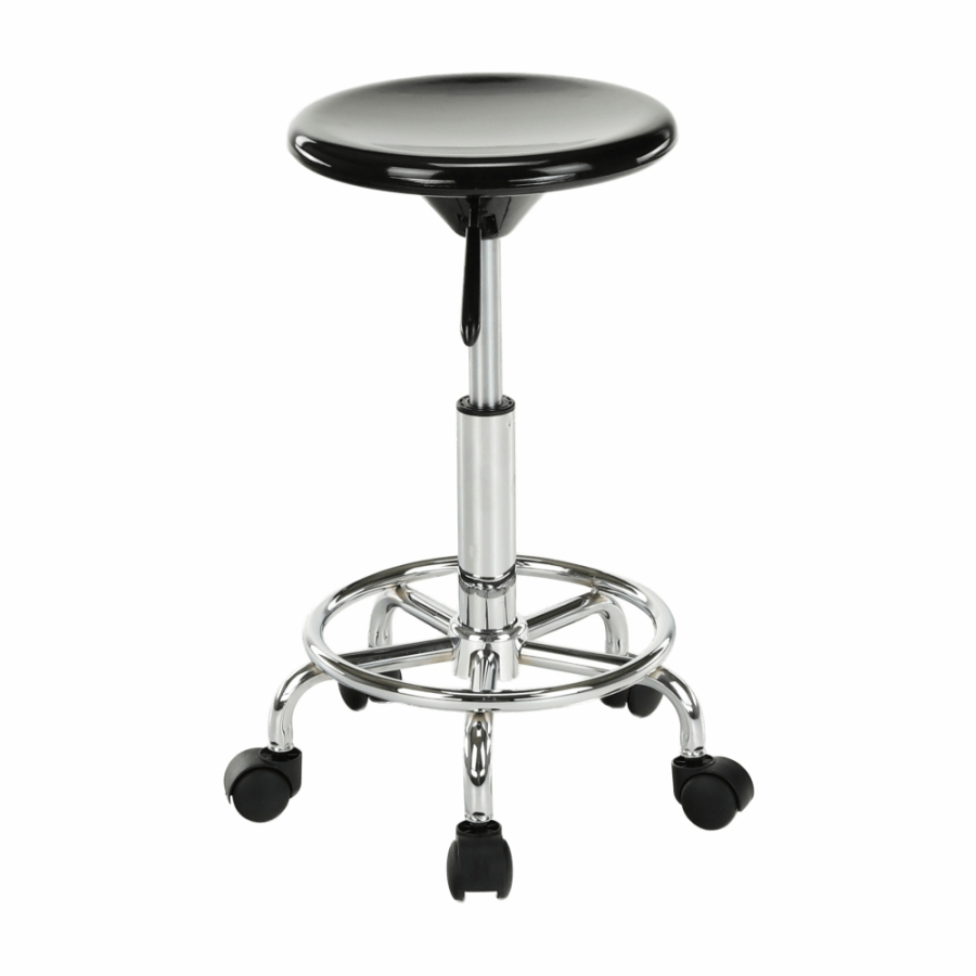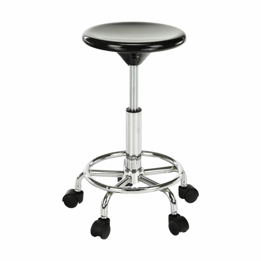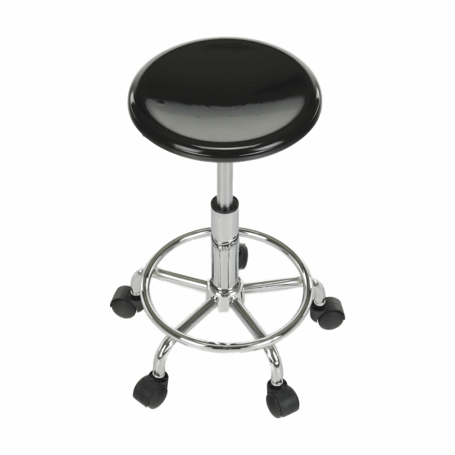 Szék - ülőke kerekeken, állítható magasságú MABEL 3 New Anyag: króm/ műanyag Szín:fekete Méretek(SzéxMéxMa): 35x35x43/55 cm Ülésmagasság : 43/55 cm Kapacitás 90 kg Bontásban szállítva