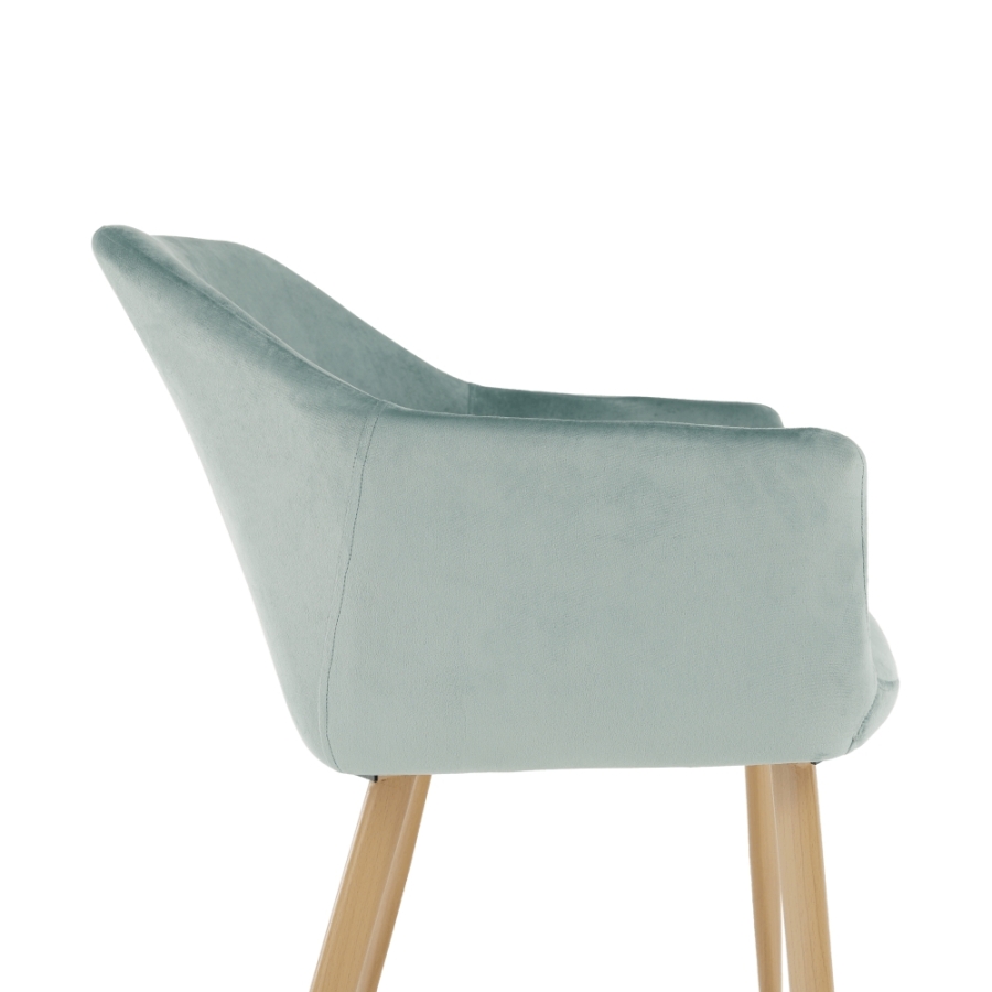 Design szék ODOVEL Anyag: Velvet szövet/fém A szövet kopásállósága: 80 000 Martindale Szín: menta/bükk Méretek (SzéxMéxMa): 56x63x82 cm Ülésmagasság: 49 cm Ülésmélység: 46 cm Terhelhetőség: 90 kg Szétszerelve szállítva.