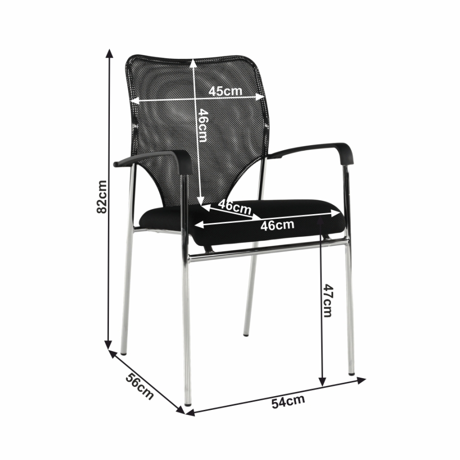 Szín: fekete/króm Anyag: háló/műanyag/fém A szövet kopásállósága: 90 000 Martindale Méretek (SzéxMéxMa): 54x56x82 cm Ülésmagasság: 47 cm Ülésmélység : 46 cm Ülésszélesség : 46 cm Háttámla szélessége: 45 cm Háttámla magassága: 40 cm Terhelhetőség: 110 kg Rakásolható Egészben szállítva.