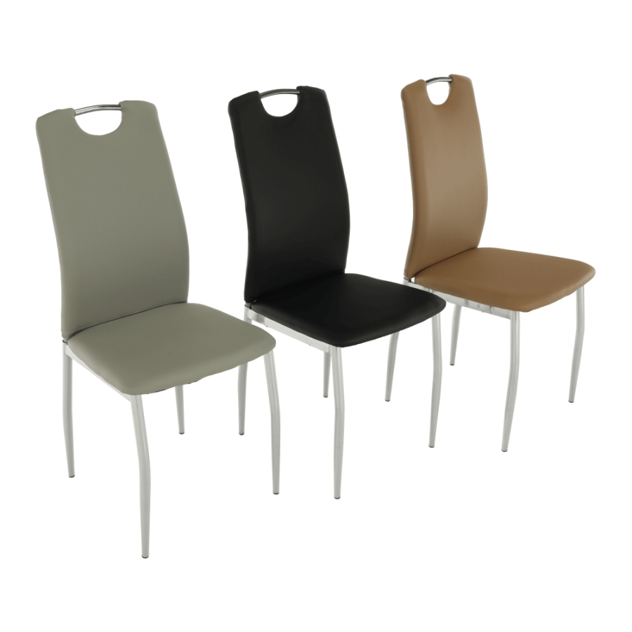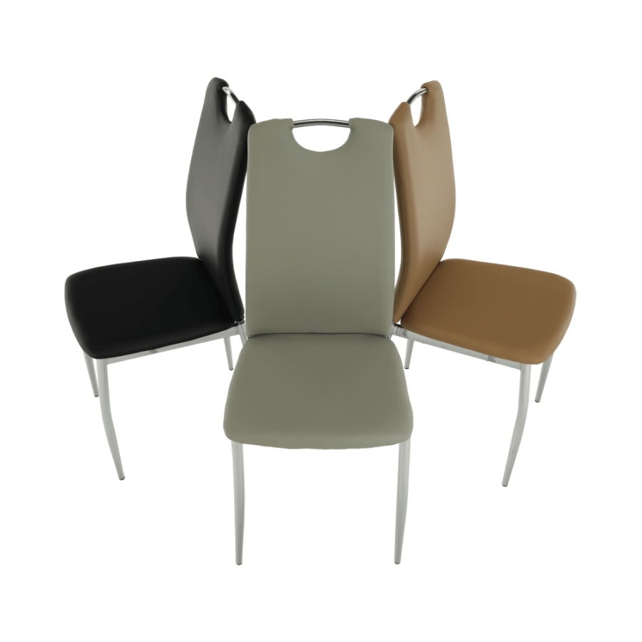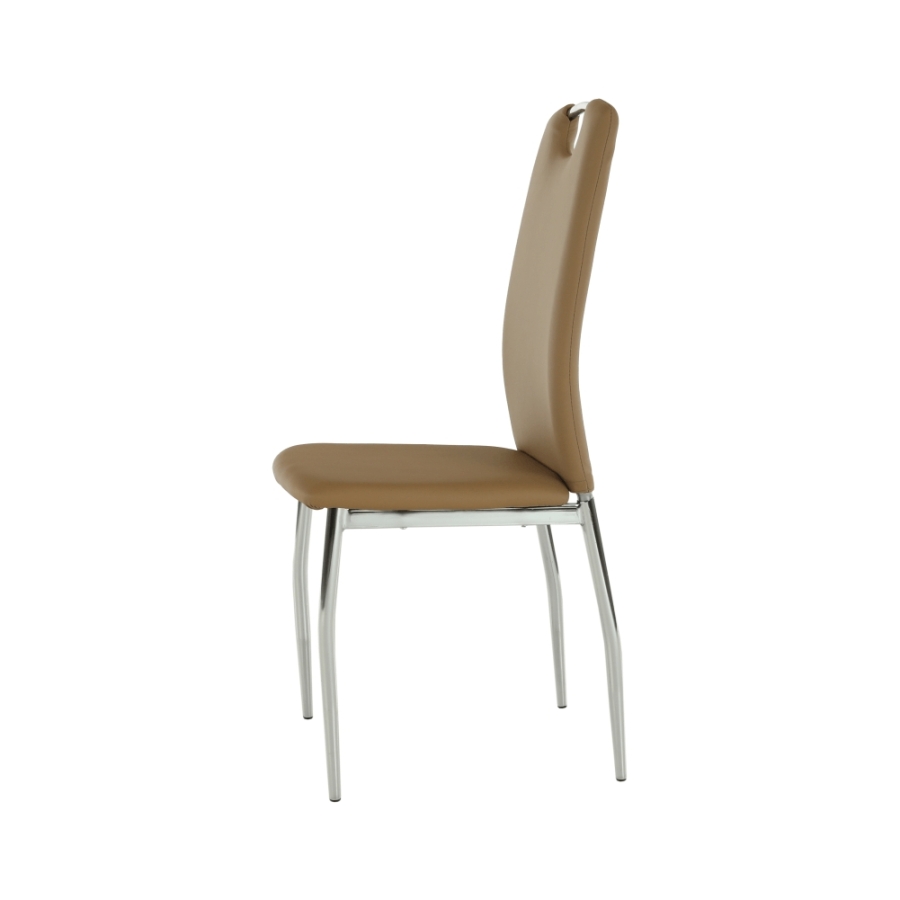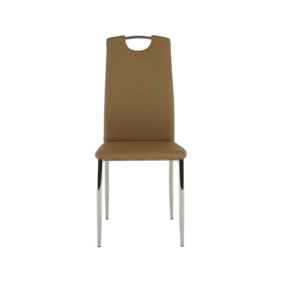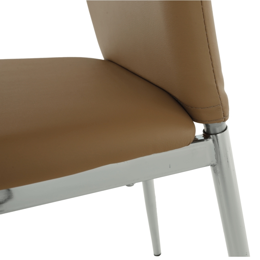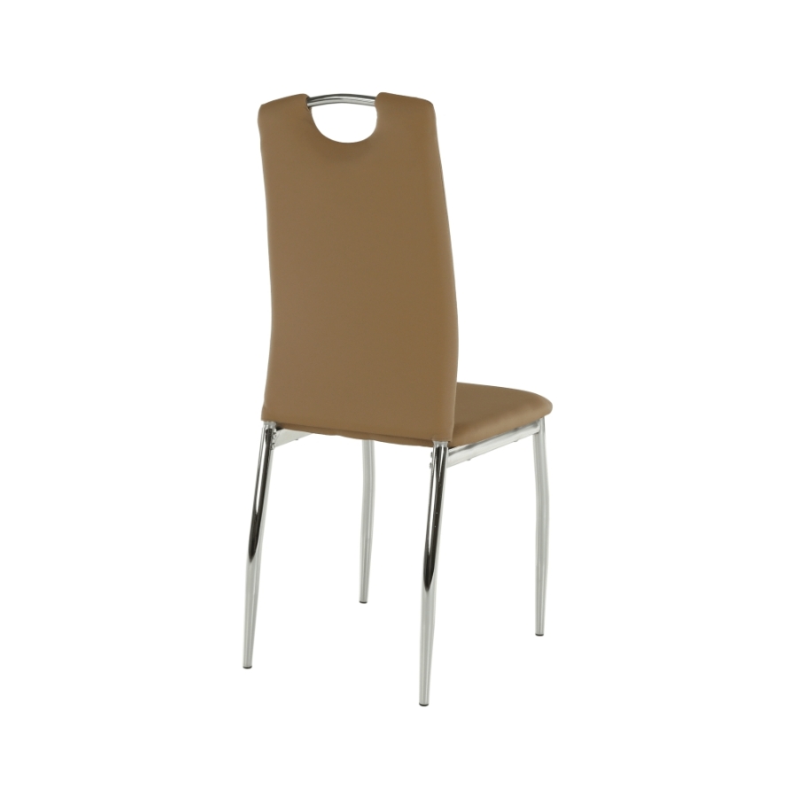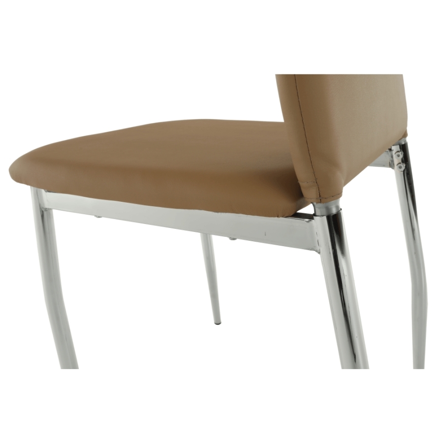 Étkezőszék ERVINA Anyag: textilbőr + króm A szövet kopásállósága: 100 000 Martindale Színváltozat: bézs textilbőr Méretek (SzéxMéxMa): 42x43x99cm Ülőrész magassága: 47cm Teherbírás: 110 kg Szállítás szétszerelve