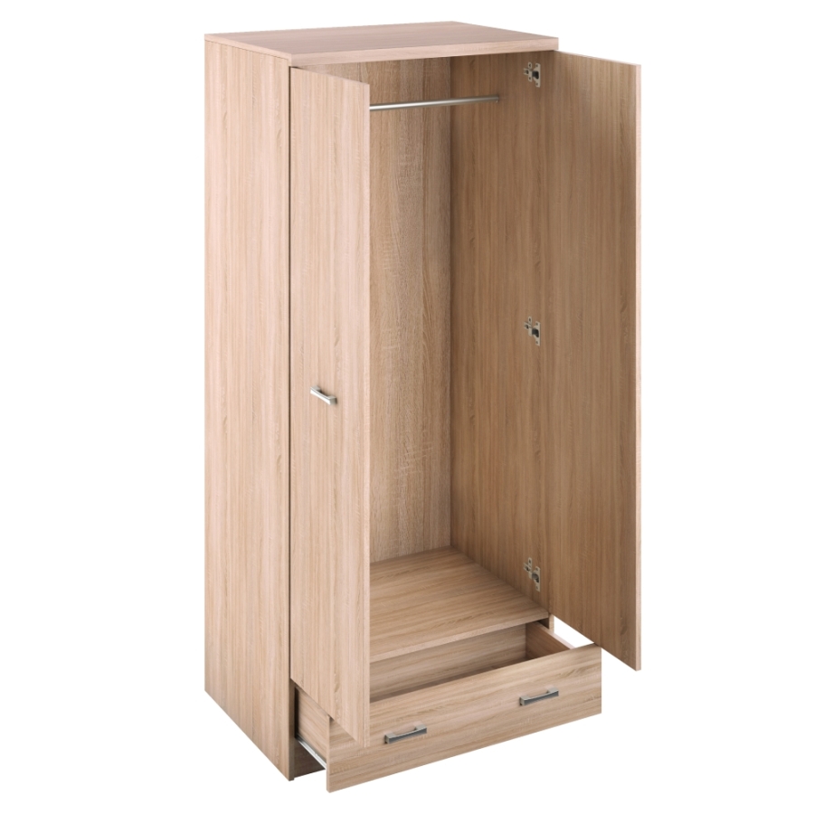 Szekrény 2D1S TOPTY TYP 29 Anyag: laminált DTD Szín: sonoma tölgy Méretek (SzxMéxMa): 80x57x183 cm Kétajtós Akasztós Fiók Tárhely Szétszerelve szállítva.