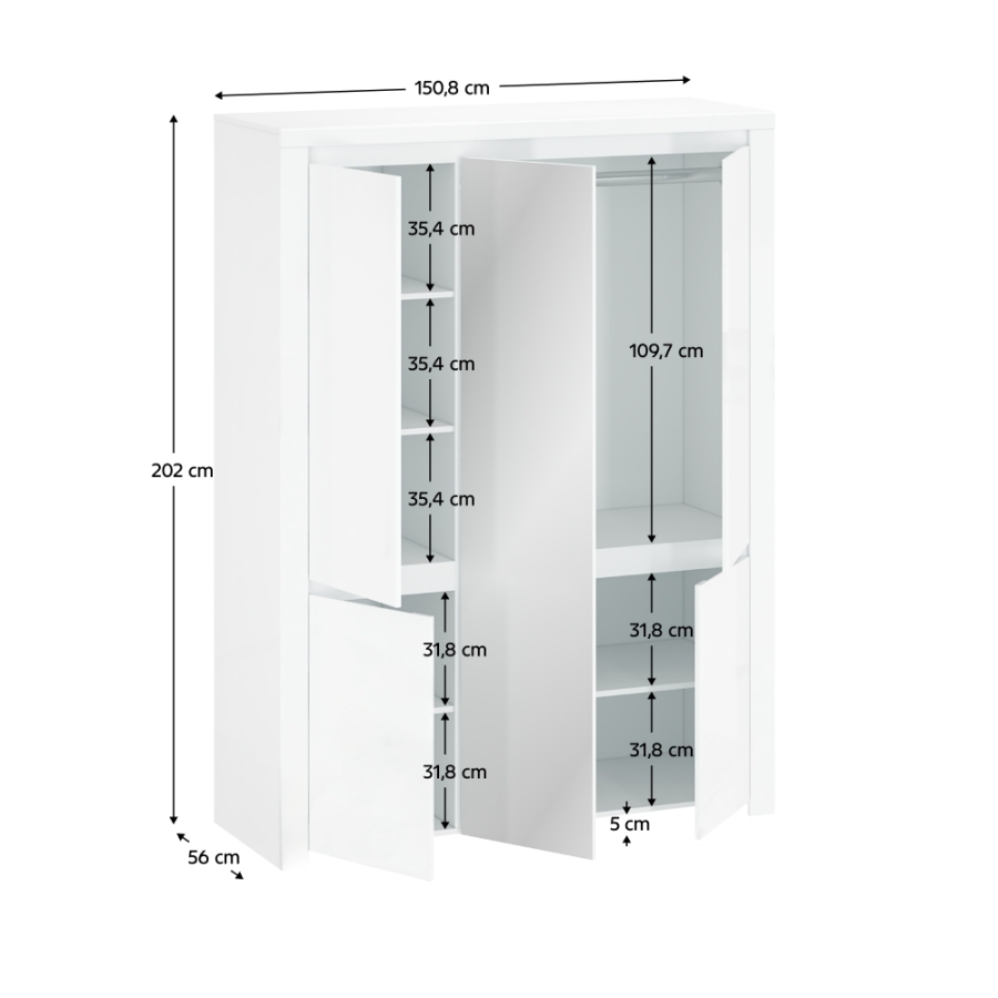 4 polc, 1 akasztórúd, 1 tükör