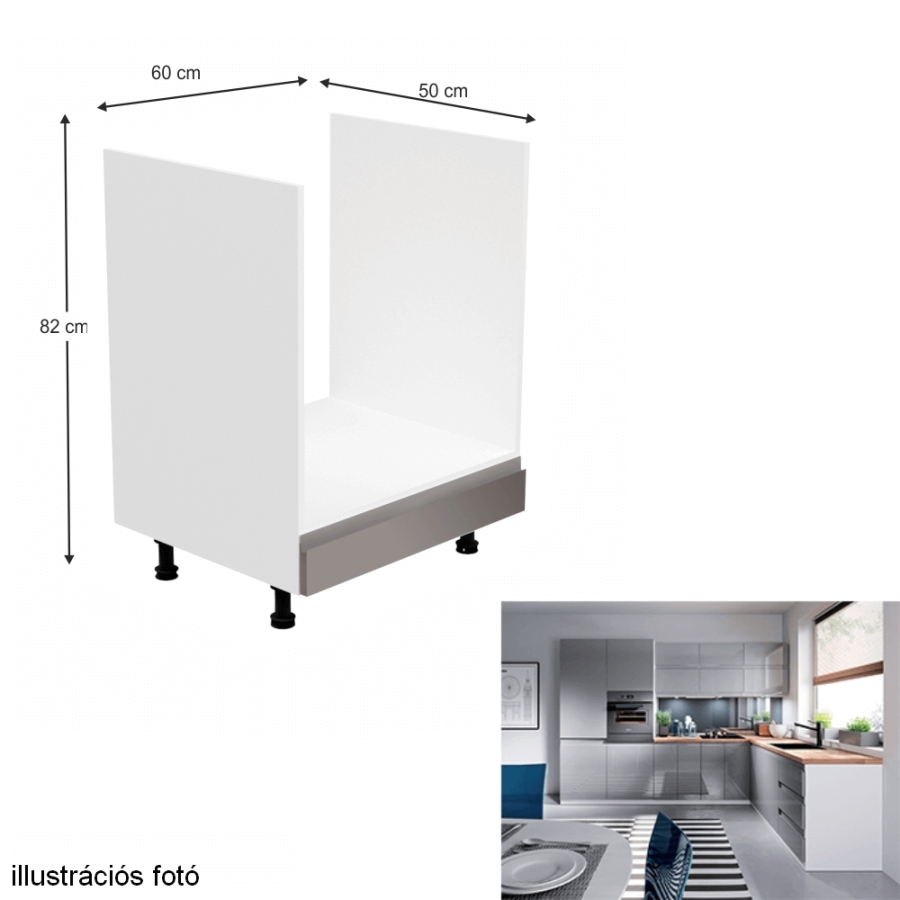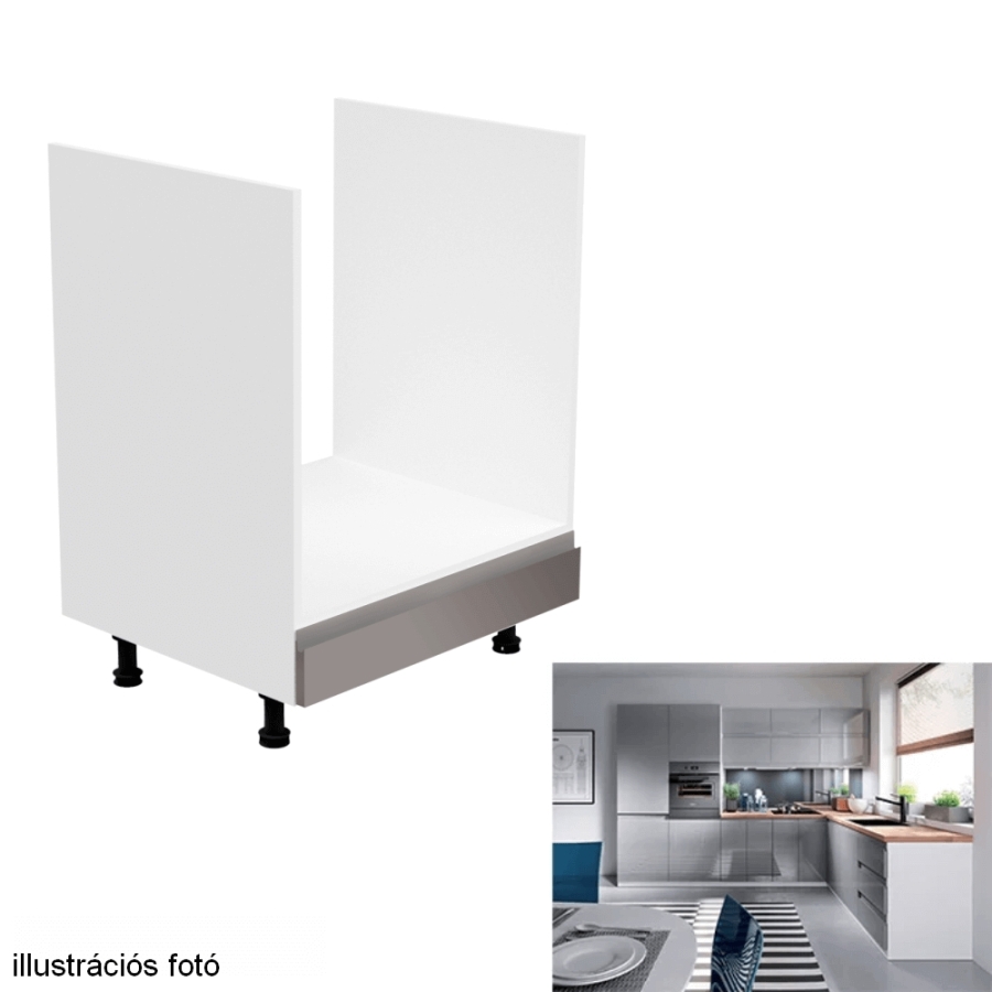 Szekrény a beépíthető készülékekhez, fehér/szürke extra magasfényű, AURORA D60ZK