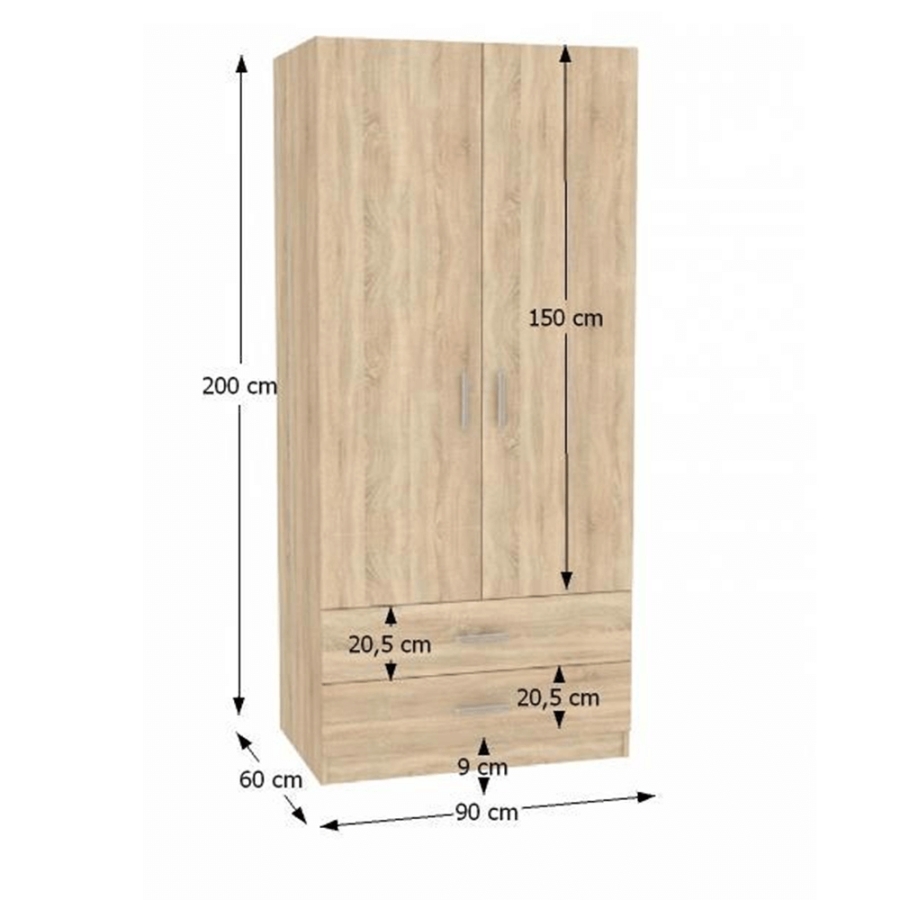 Méretek (SzéxMéxMa): 90x60x200 cm