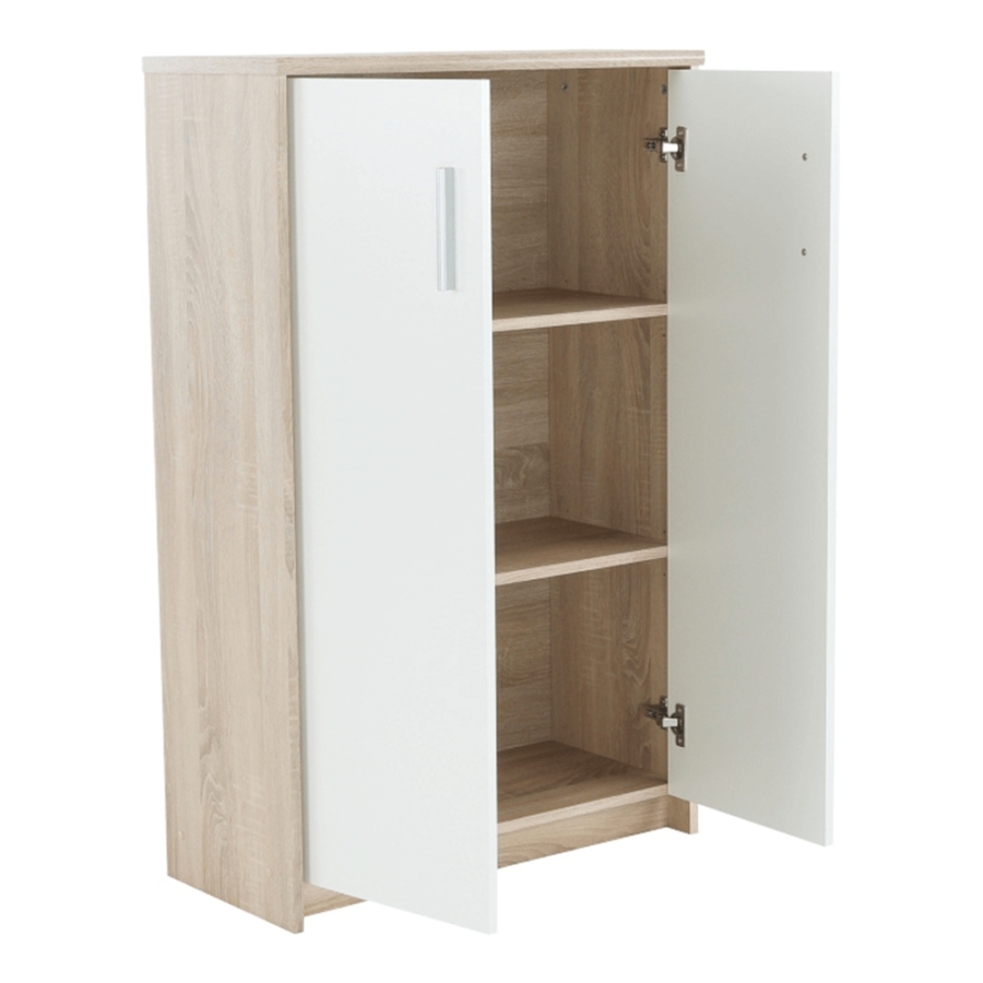 Irodai szekrény JOHAN 2 NEW 13 ajtóval Színváltozat: sonoma tölgy/fehér, Anyaga: laminált DTD Méretek (SzéxMéxMa): 72,5x33,8x115,8 cm Szlovák termék Lapraszerelten szállítva