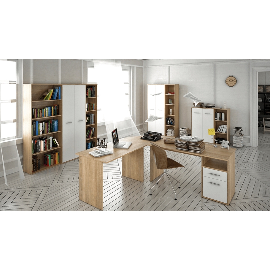 Anyaga: laminált DTD Színe: világos sonoma tölgy/fehér Méretek (SzéxMéxMa): 203,4x176x70,7 cm A bútorlap vastagsága: 1,6 cm Sarok Fiók Szekrény Lapraszerelten szállítva