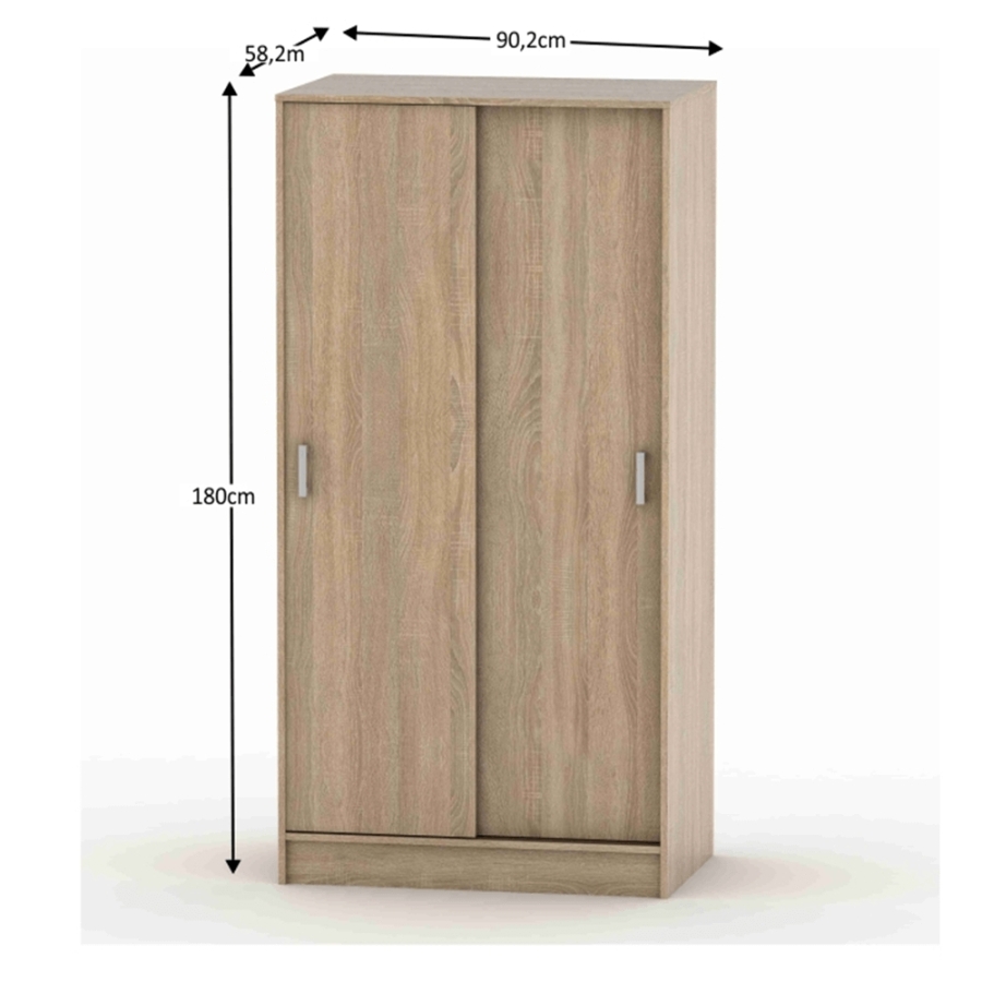 Szekrény BETTY 4 kétajtós tolóajtóval. Anyag: laminált DTD Színe: sonoma tölgy Méretek (SzéxMéxMa): 90,2x58,2x180 cm. Lamino mélysége: 1,6 cm Szlovák termék. Szállítás szétszerelve.
