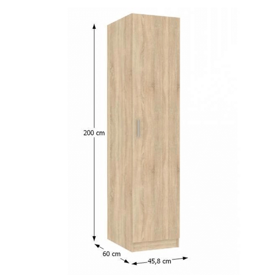 Szekrény INVITA TYP 1 Anyag: laminált DTD Változat: sonoma tölgy Méretek (SzéxMéxMa): 45,8x60x200 cm Egyajtós Minőségi szlovák termék Szállítás szétszerelve