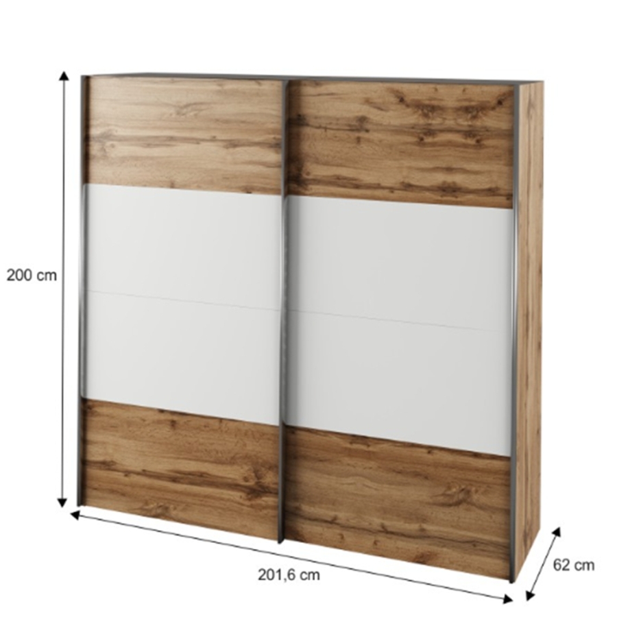 Szekrény tolóajtóval, tölgy wotan/fehér, GABRIELA NEW