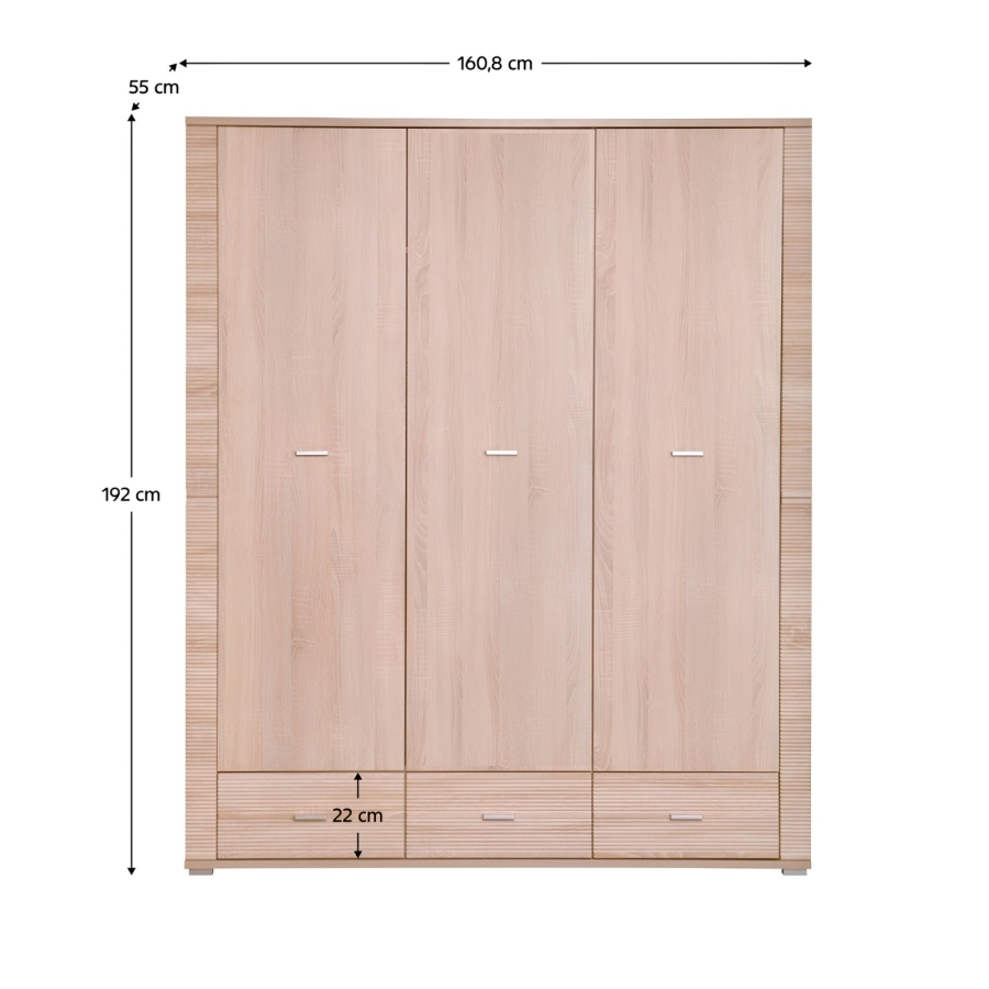 Szekrény tükör nélkül typ 01, három polccal és három fiókkal Alkalmas a hálószobába Anyag: laminált DTD Az élek recézett listákkal végződnek Színváltozat: sonoma tölgy Méretek (SzéxMaxMé): 161x192x55 cm Szétszerelve szállítjuk Egyedi megrendelés estén van az adott összegnek a 10%-át befizetni,mint előleg. Az előleg befizetése után az Ön követelményét benyújtjuk a gyártónak. Szállítási idő 8-10 hét.