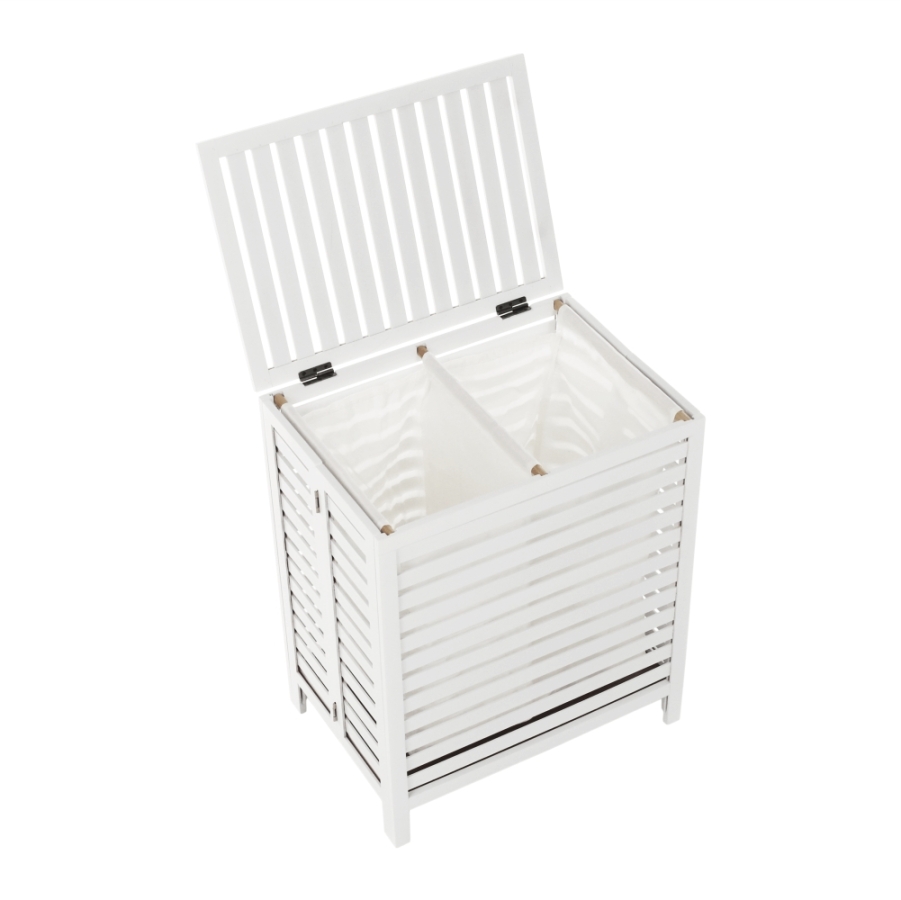 Szennyeskosár MENORK Anyag: bambusz/szövet Szín: fehér Méretek (SzéxMéxMa): 50x35x60 cm Kivehető szövetzsák A szövetzsák mosógépben mosható összecsukható kosár Térfogat: 105 liter Bontásban szállítva