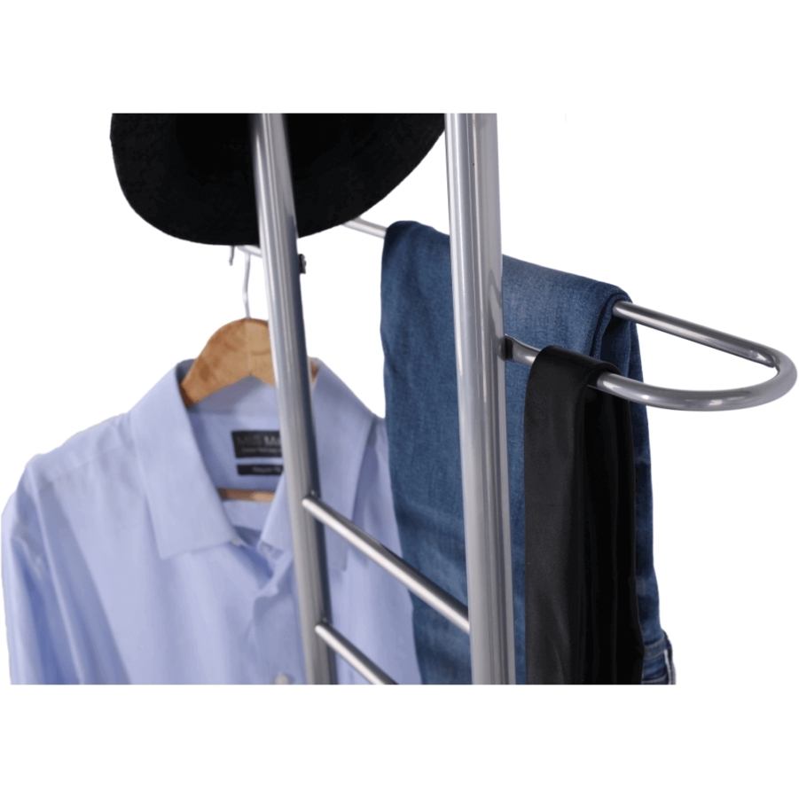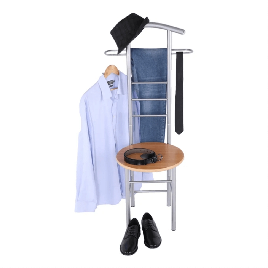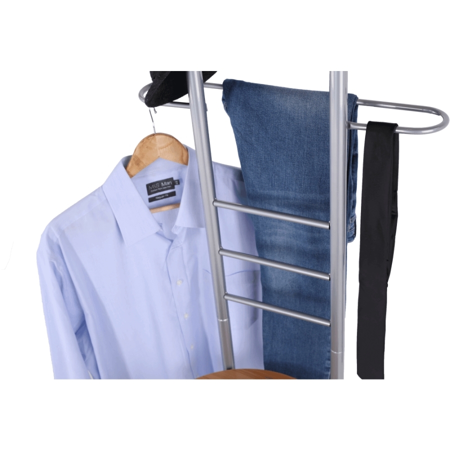 Néma szolga székkel Frank Anyag: fém /fóliázott MDF, Változat: bükk/ezüst Méretek (SzéxMéxMa): 50x46x119 cm. Szállítás szétszerelve.