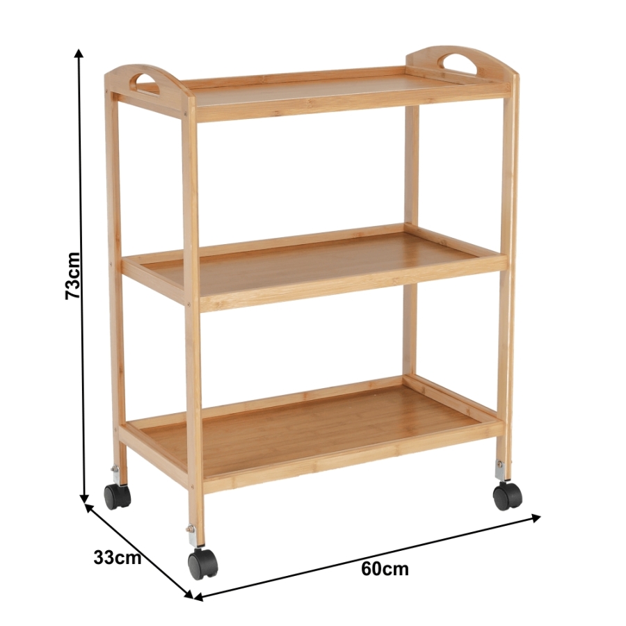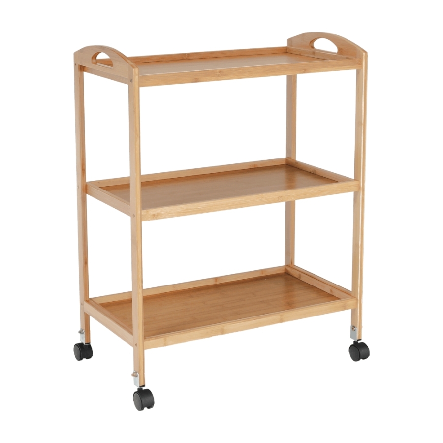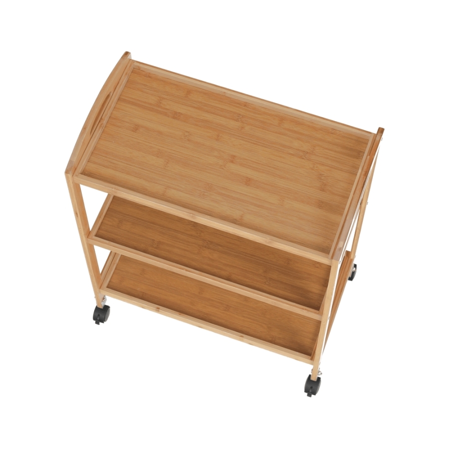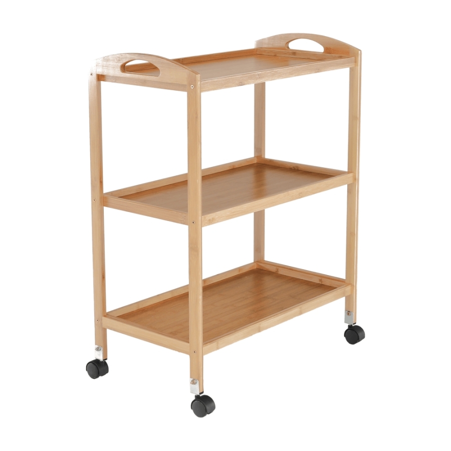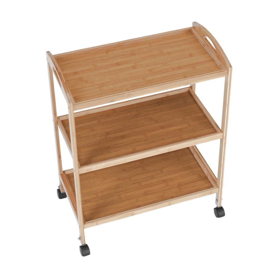 Anyag: lakkozott bambusz Szín: természetes Méretek (SzxMéxMa): 60x33x73 cm 3-szintes 3-polc Kerekeken Tálaló Bontásban szállítva