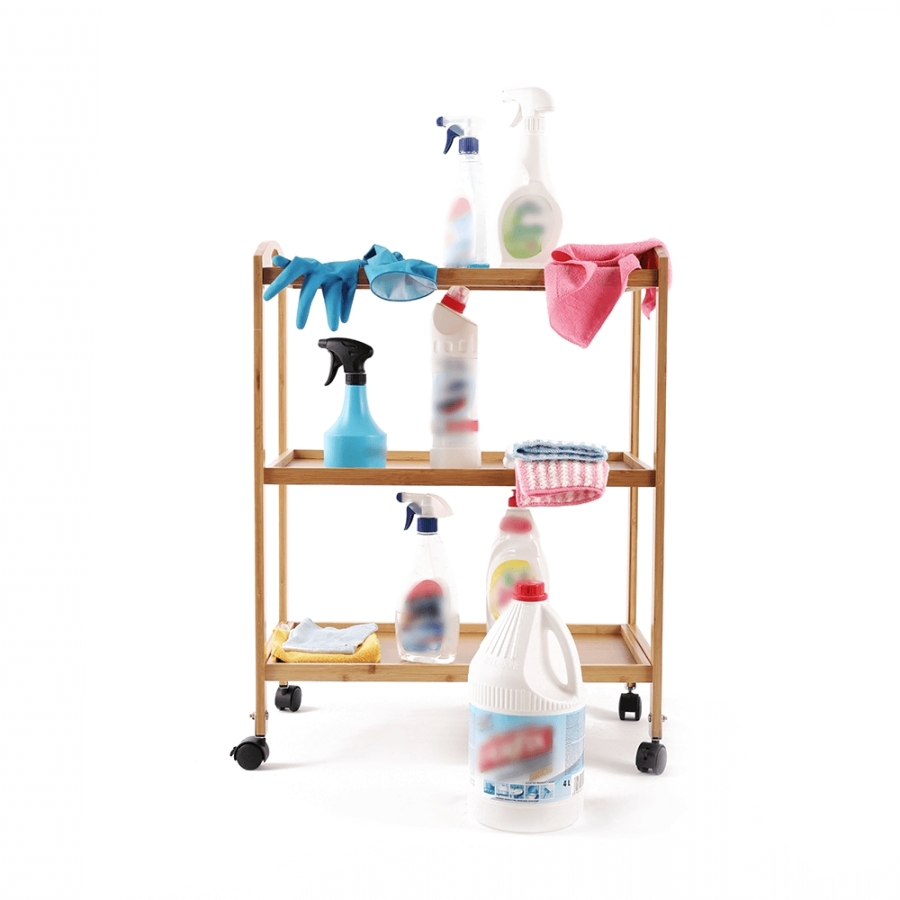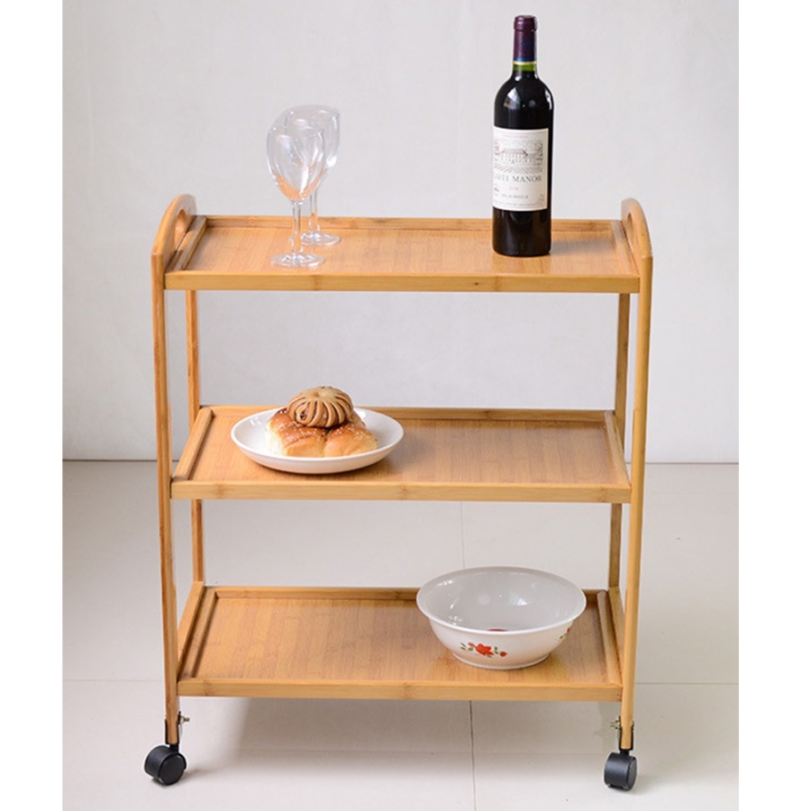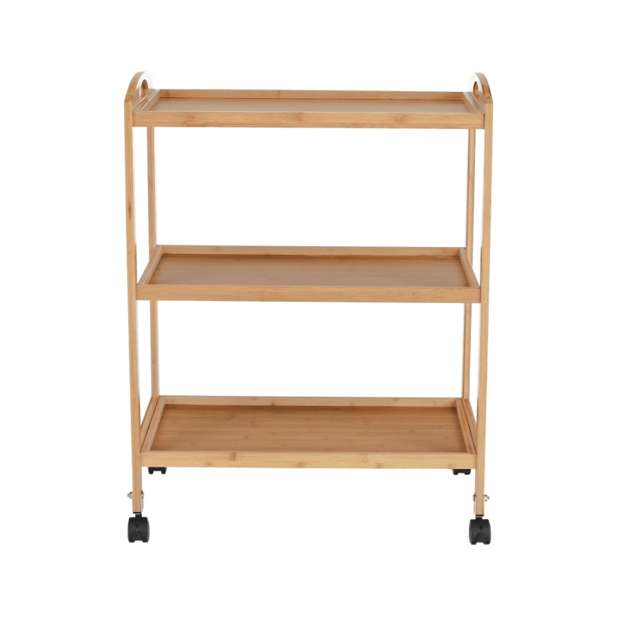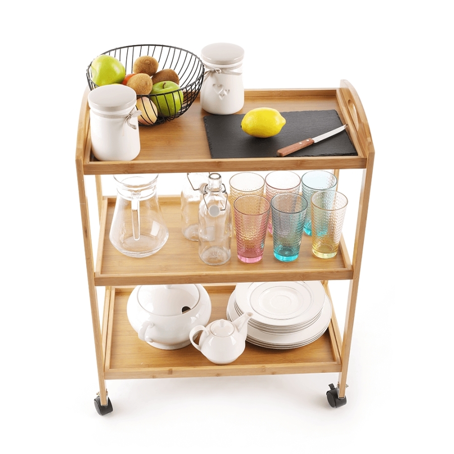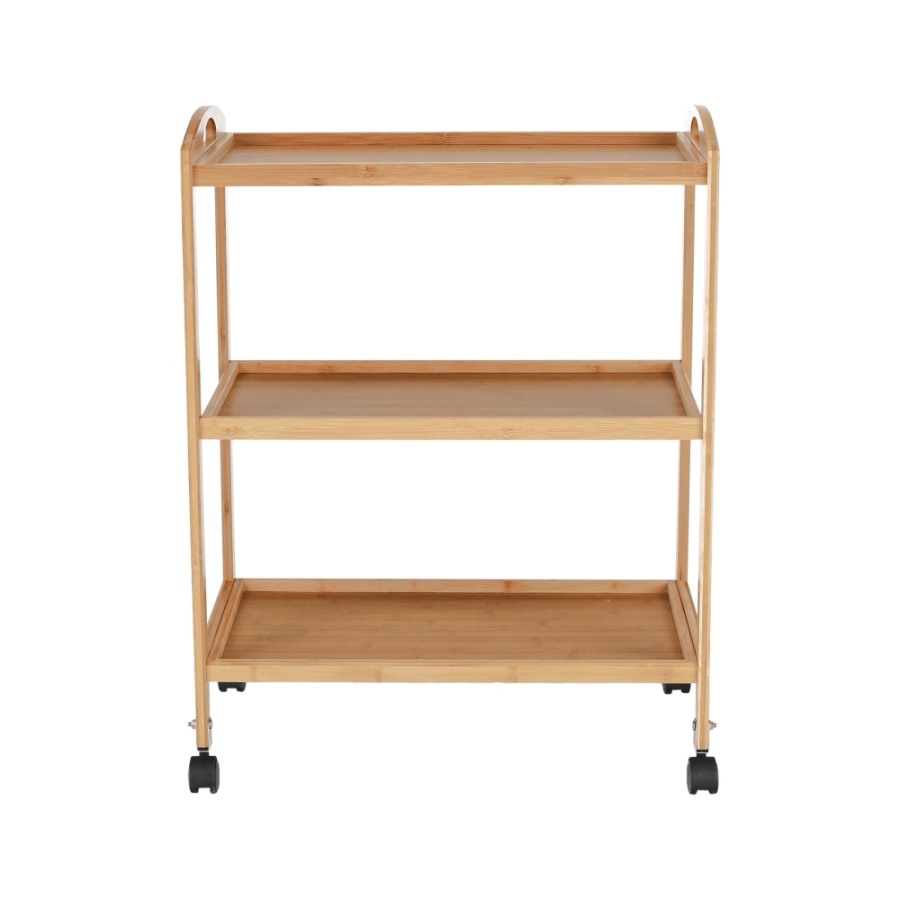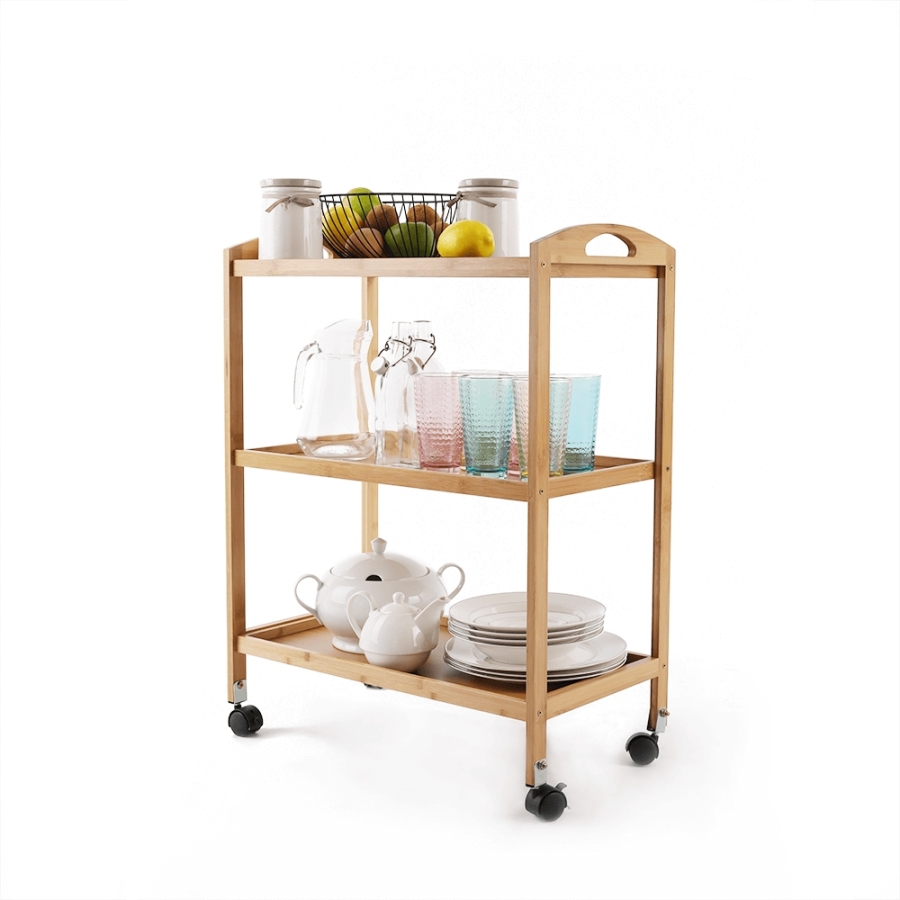Anyag: lakkozott bambusz Szín: természetes Méretek (SzxMéxMa): 60x33x73 cm 3-szintes 3-polc Kerekeken Tálaló Bontásban szállítva