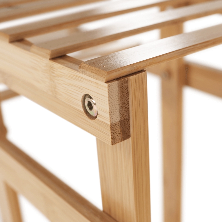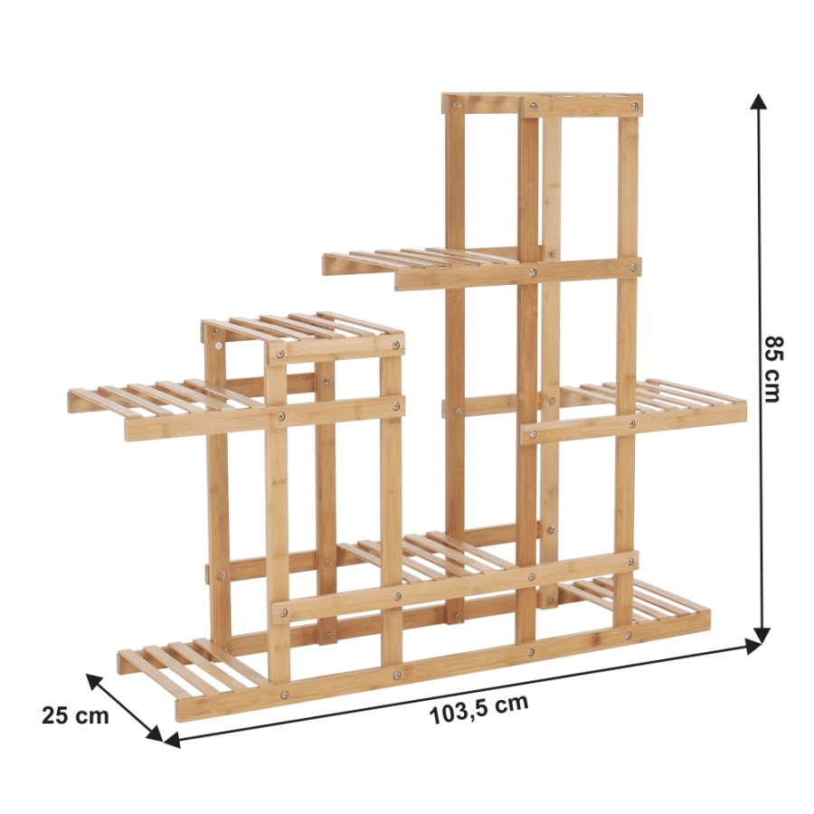 Anyag: lakkozott bambusz Szín: bambusz Méretei (SzéxMéxMa): 103,5x25x85 cm 8 polc Kültérbe nem alkalmas Egy polc 10 kg teherbírással Bontásban szállítva.