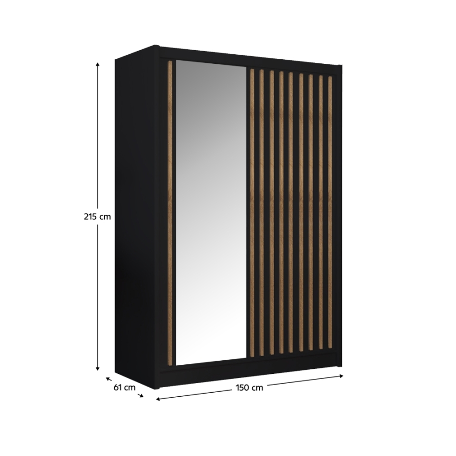 Tolóajtós szekrény, fekete/craft tölgy, 150x215 cm, LADDER