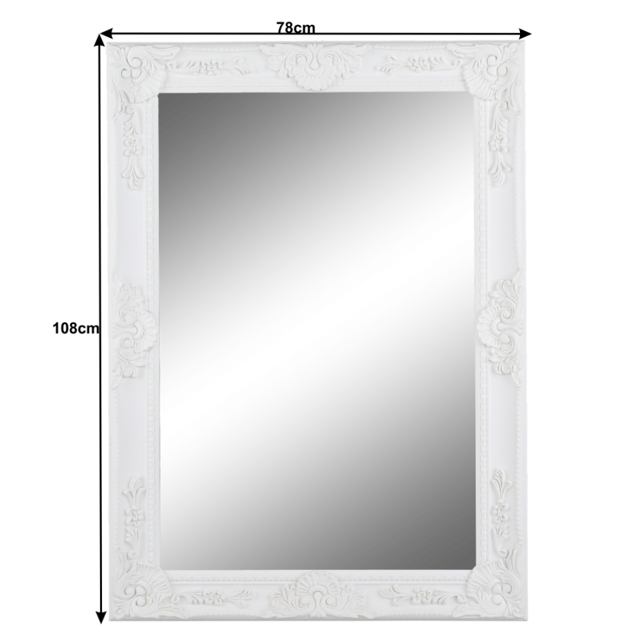 Elegáns tükör fa kerettel fehér színben. A tükör belső része (SzéxMa): 78x108 cm