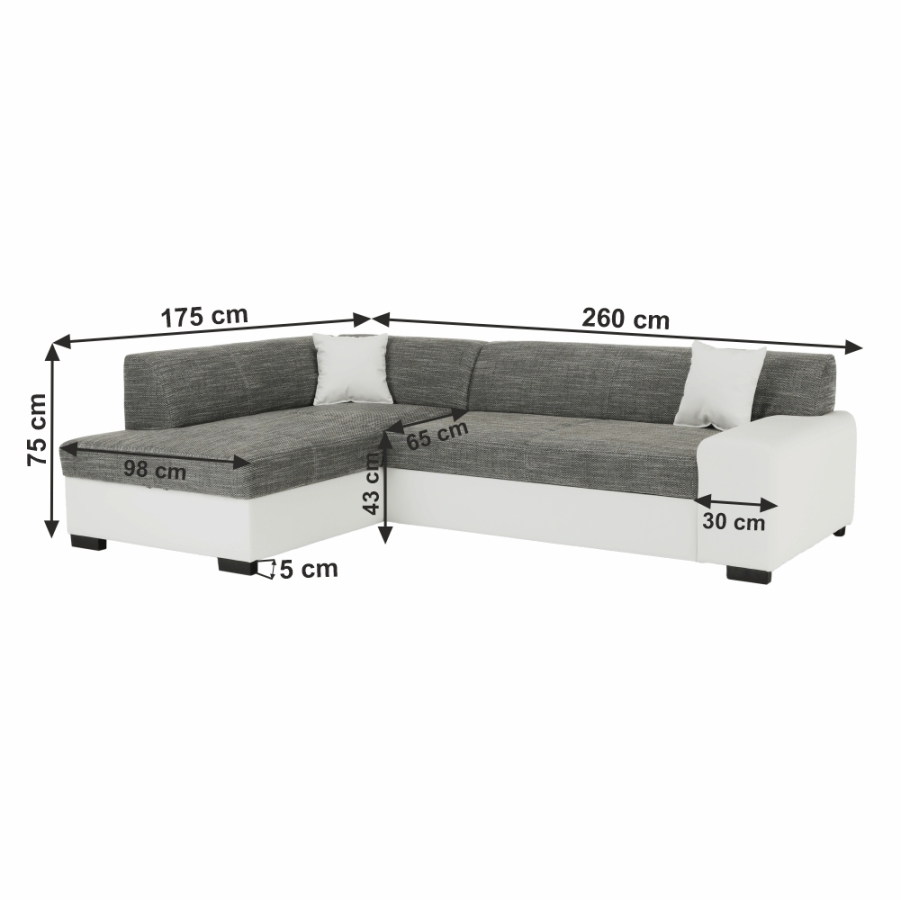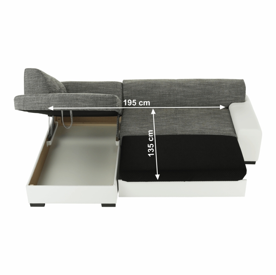 Kinyitható kárpitozott sarokülőgarnitúra rakodótérrel, balos, MINERVA Anyag: textilbőr/Berlin szövet 01 A szövet kopásállósága: 55 000 Martindale A textilbőr kopásállósága: 100 000 Martindale Szín: fehér/szürke melír Méretek (SzéxMéxMa): 260x175x75 cm Fekvőterület (SzéxH): 135x195 cm Ülőrész magassága: 43 cm Ülőrész mélysége: 65 cm Az alsó tér magassága a padlótól: 5 cm Terhelhetőség: 90 kg Szállítás szétszerelve. Megrendelés lehetséges 4 színváltozatban textilbőrből és 4 színváltozatban Berlin szövetből, ár 326 900 Ft. Egyedi megrendelés esetén szükség van az adott összegnek a 10%-át befizetni,mint előleg. Az előleg befizetése után az Ön követelményét benyújtjuk a gyártónak. Szállítási idő 6-8 hét.
