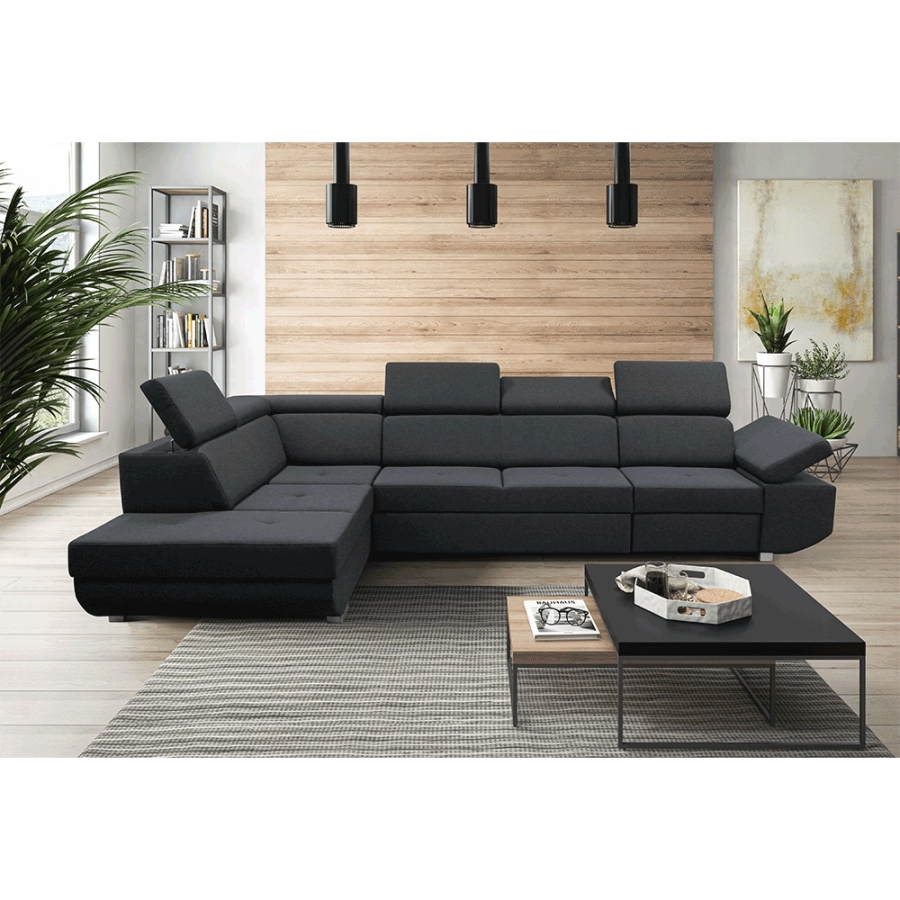Anyag: szövet Stark A szövet kopásállósága a Martindale teszt szerint: 50 000 ciklus Szín: 382 sötétszürke Méretek (SzxMéxMa): 345x220x103 cm Alvófelület (SzéxHo): 118x184 cm Ülés magassága: 42 cm Ülés mélysége: 53 cm Az alsó tér magassága a padlótól: 5 cm teljesen kárpitozott sarok kinyitható fém lábak 4 állítható fejtámla Kartámasz lehajtható funkcióval tárhellyel balos kivitelezés Vízálló anyag Bontásban szállítva. A kanapé 6 féle Stark szövetben megvásárolható az árban: 699 900 Ft. Egyedi megrendelés esetén az adott összeg 10%-át előre ki kell fizetni. Az előleg kifizetése után a megrendelését gyártásra bocsátjuk. Szállítási idő 6-8 hét.