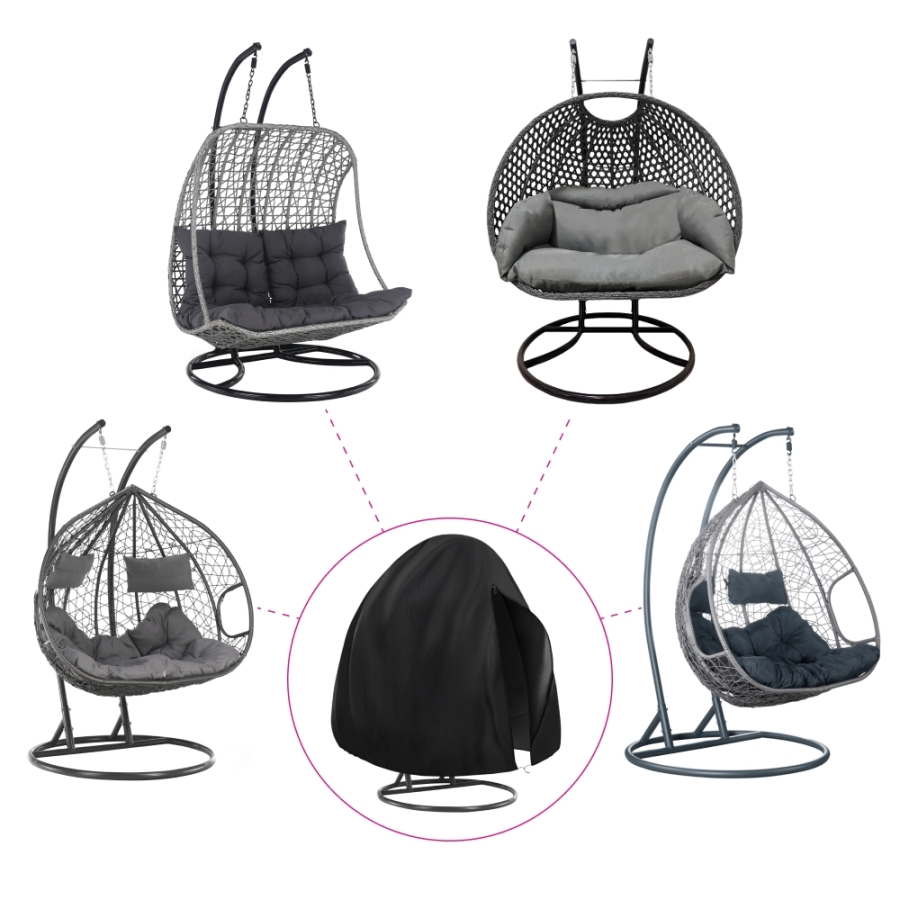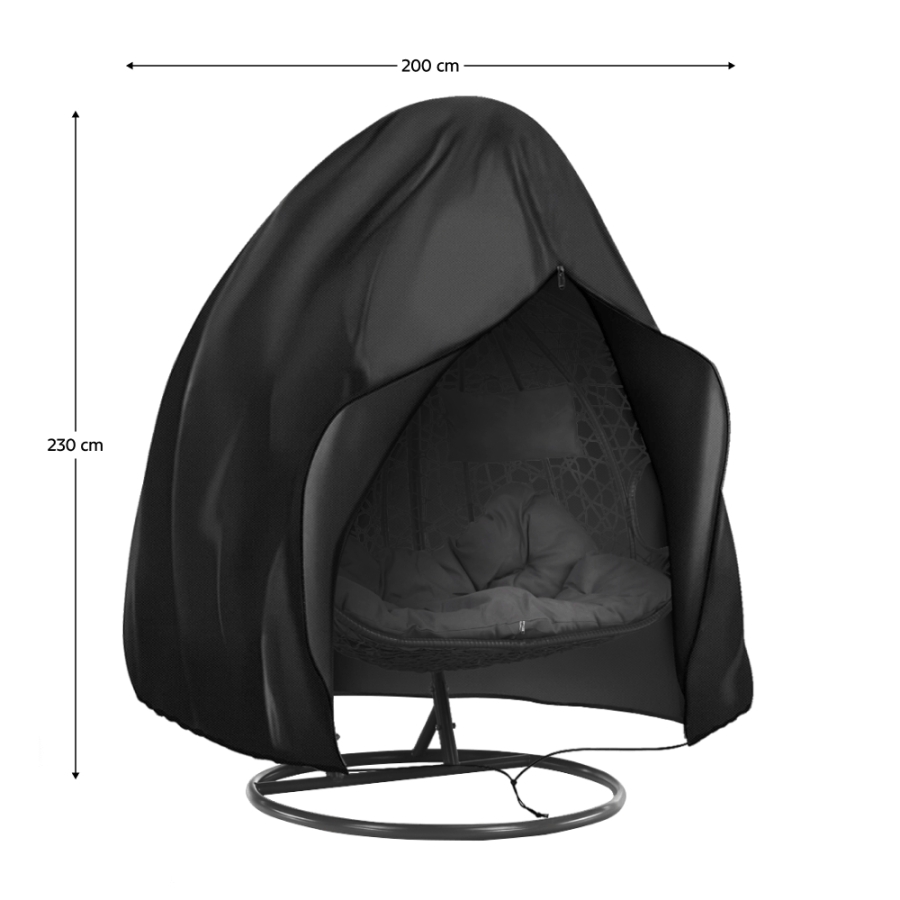 Anyag: 100% poliészter Szín: fekete Méretek (SzxMa): 200x230 cm Súly: 1 kg Cipzárral Összehúzható az alsó részén található húzózsinórral Egész évben biztosítja a fotel védelmét Ellenáll a pornak, szélnek, hónak és esőnek Vízálló anyag Dupla függő fotelhez alkalmas (double) Mosható 40 °C-on